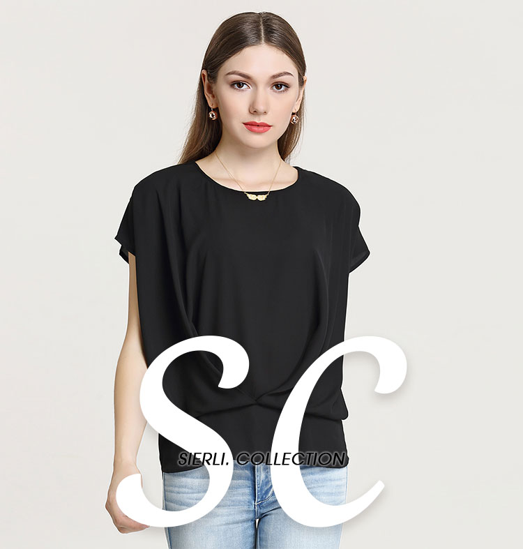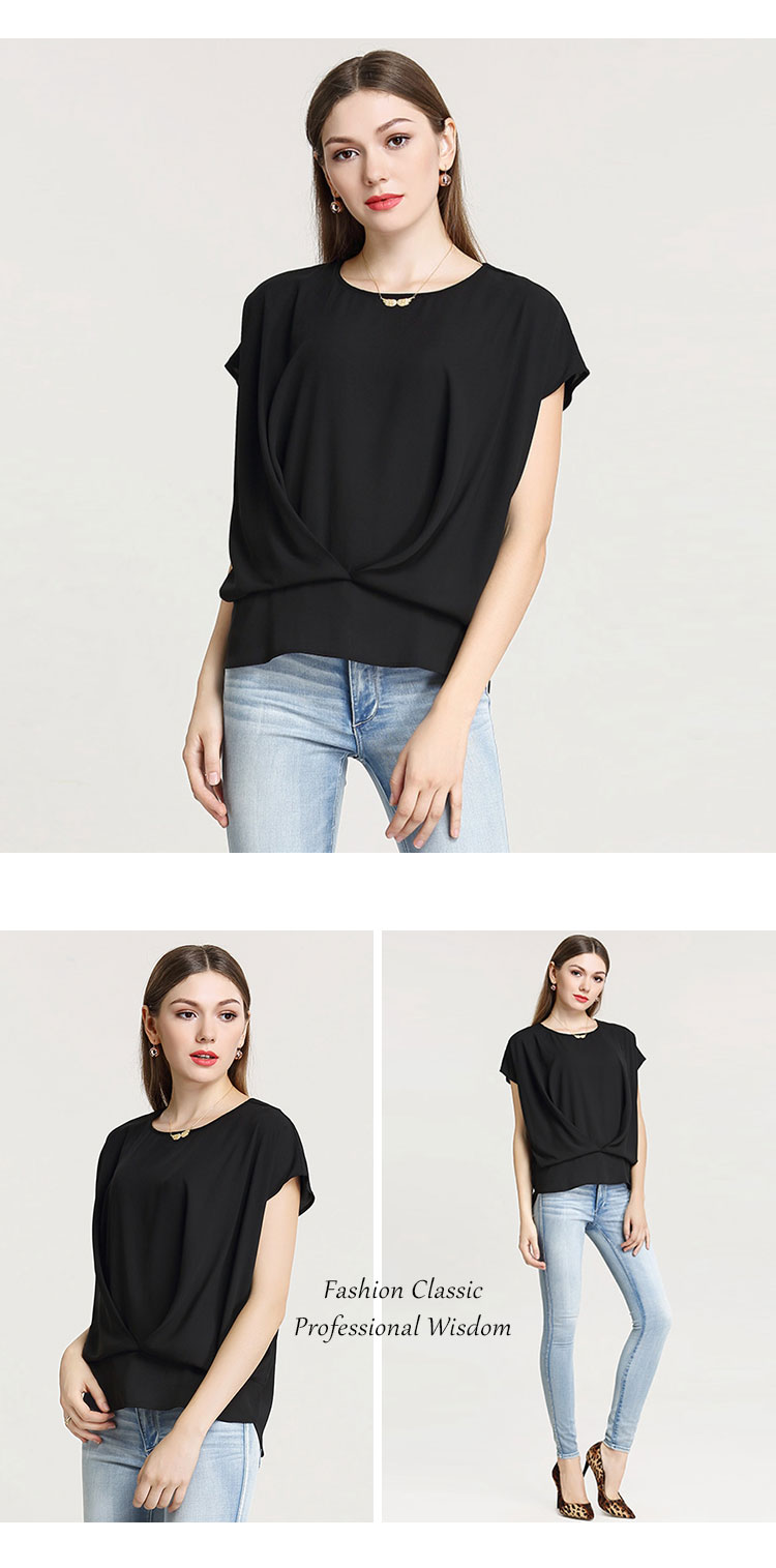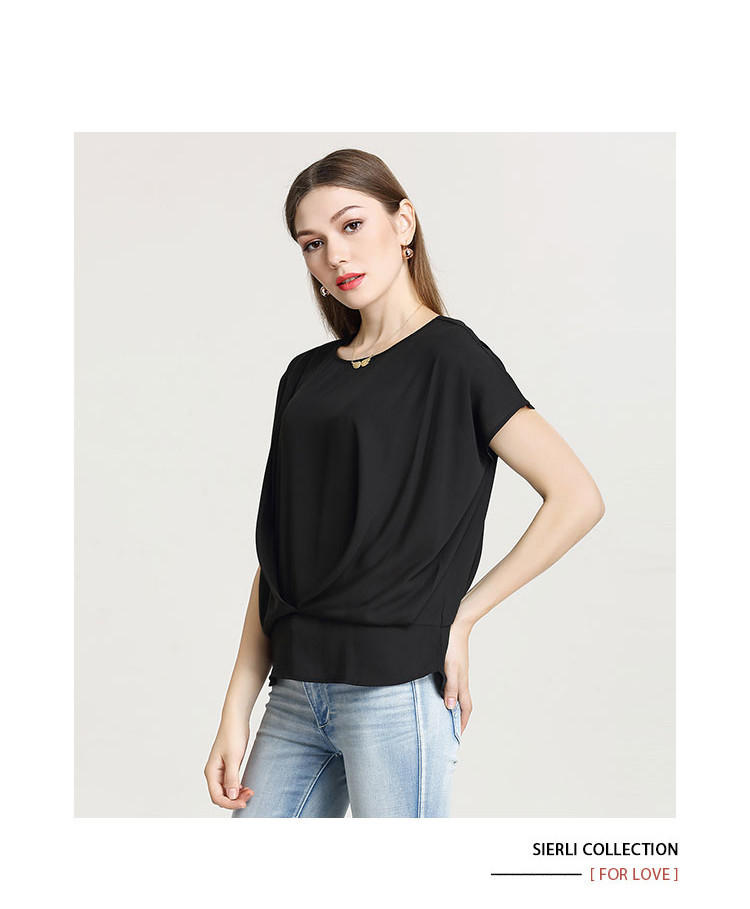 春夏女装宽松活褶T恤日常通勤百搭休闲上衣 083295