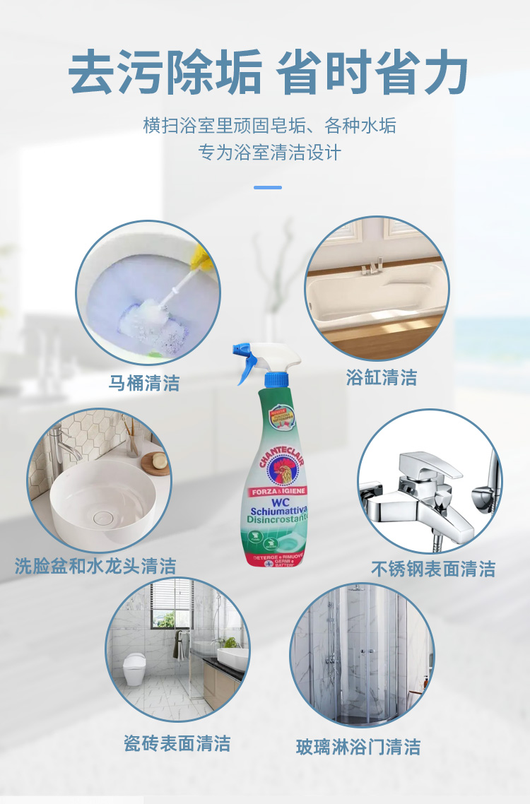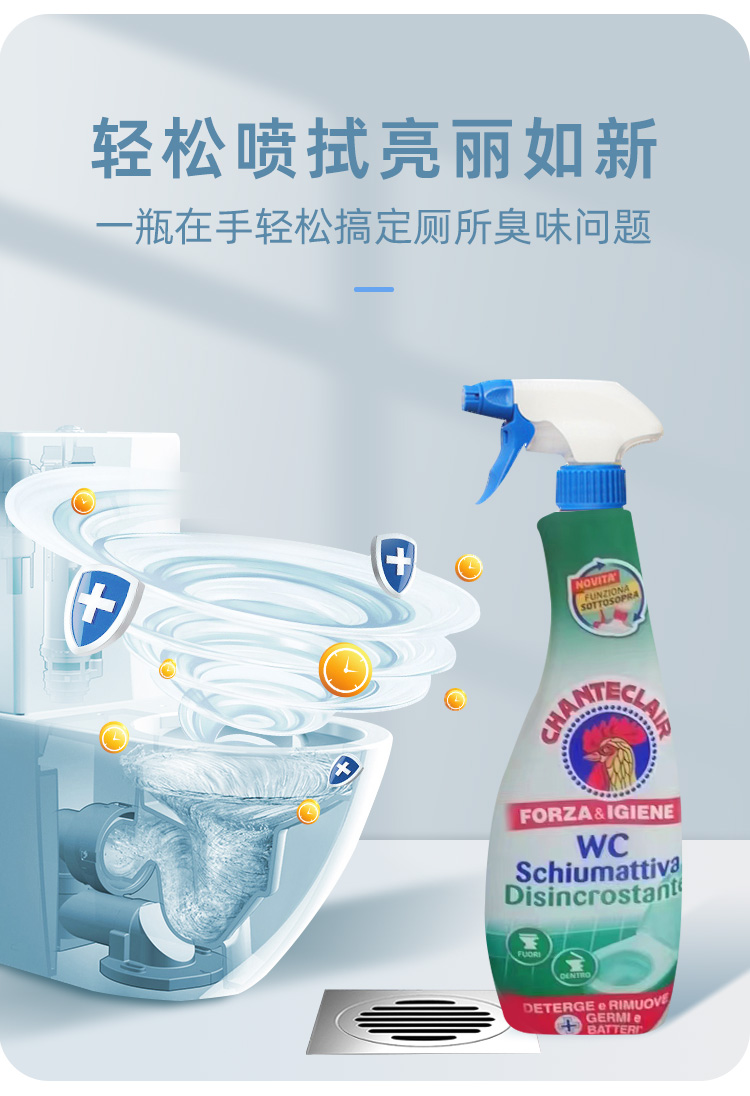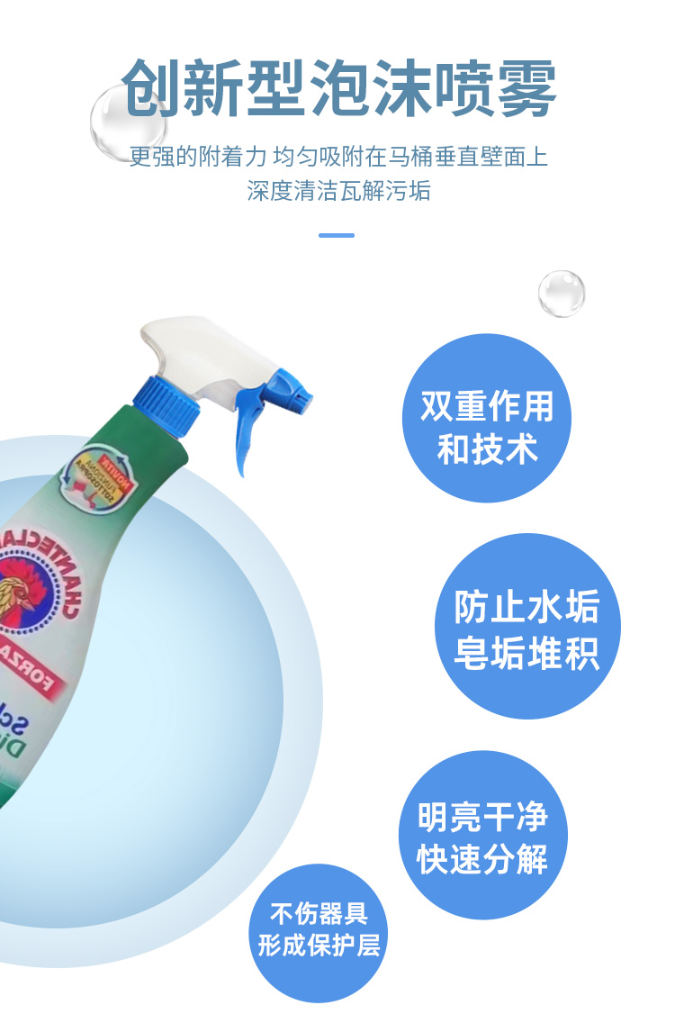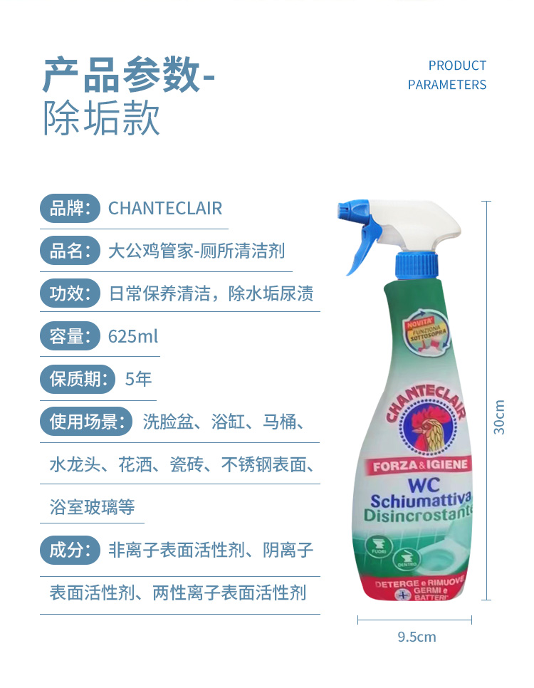 商品名称:CHANTECLAIR/大公鸡管家马桶清洁剂-蓝色除垢款625ml 新旧包装随机不接受指定