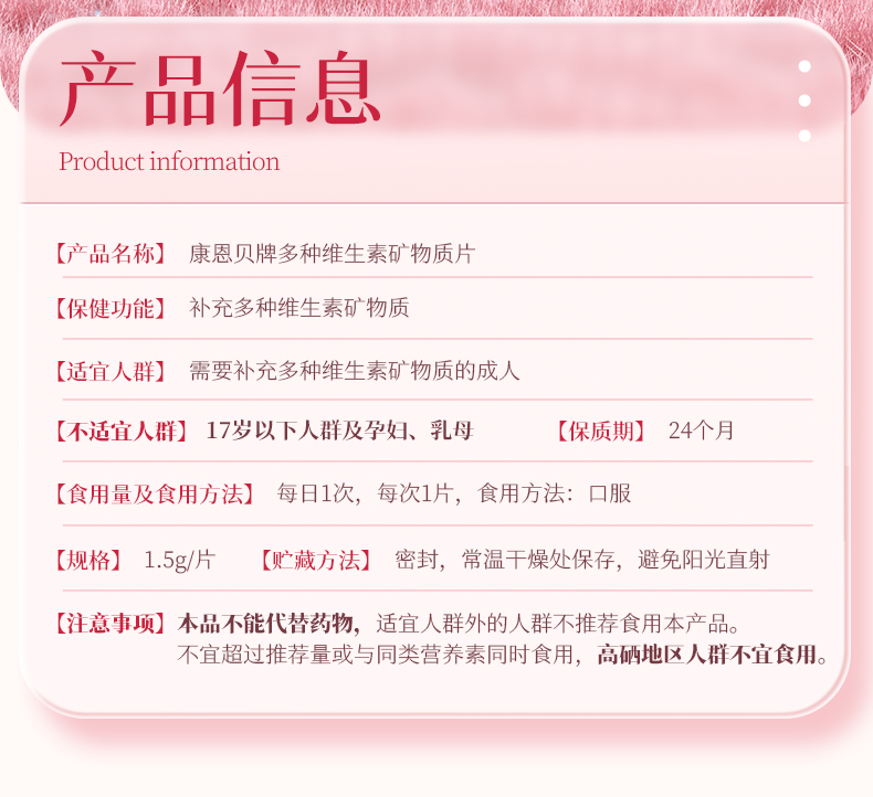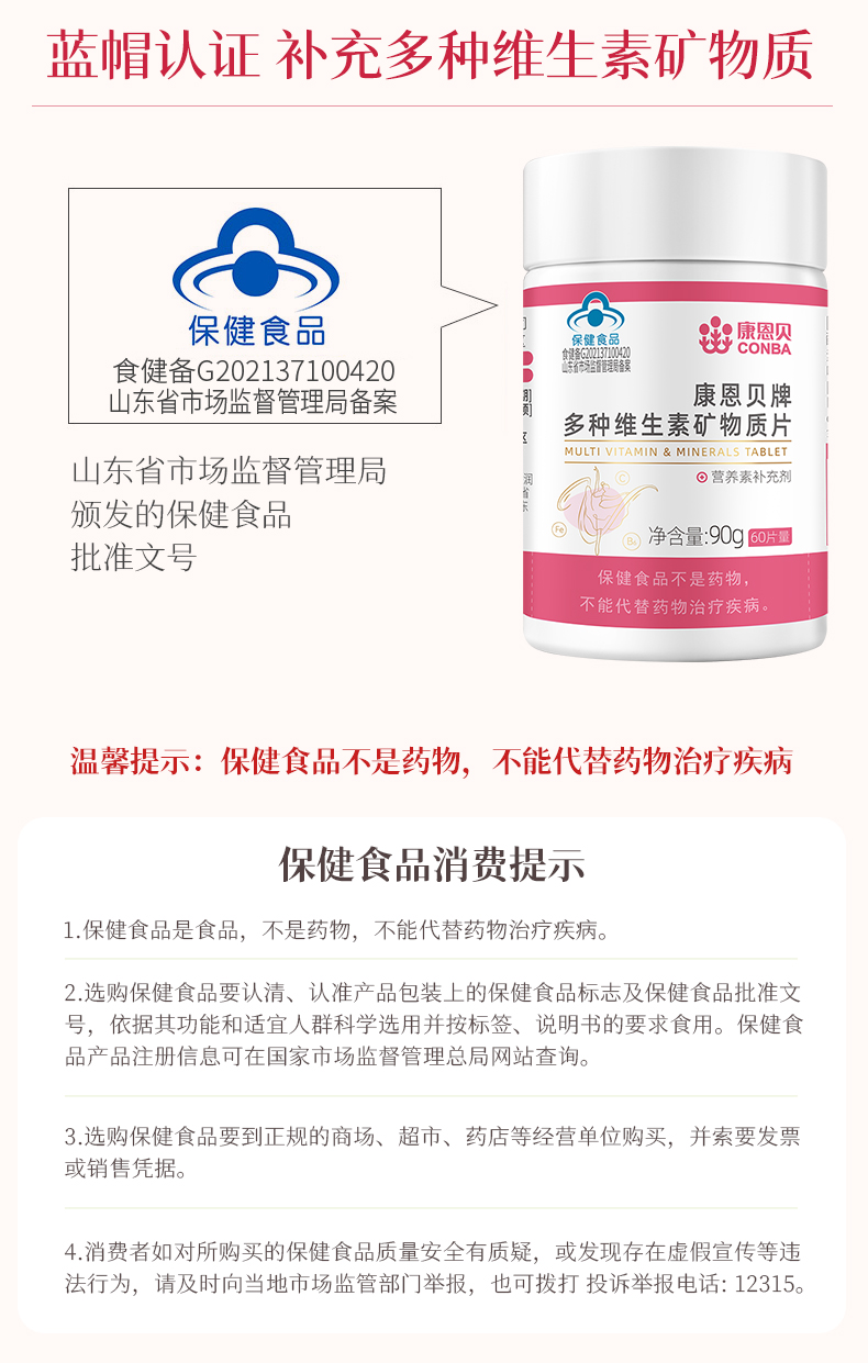 商品名称:CONBA/康恩贝女士多维矿物质片60片