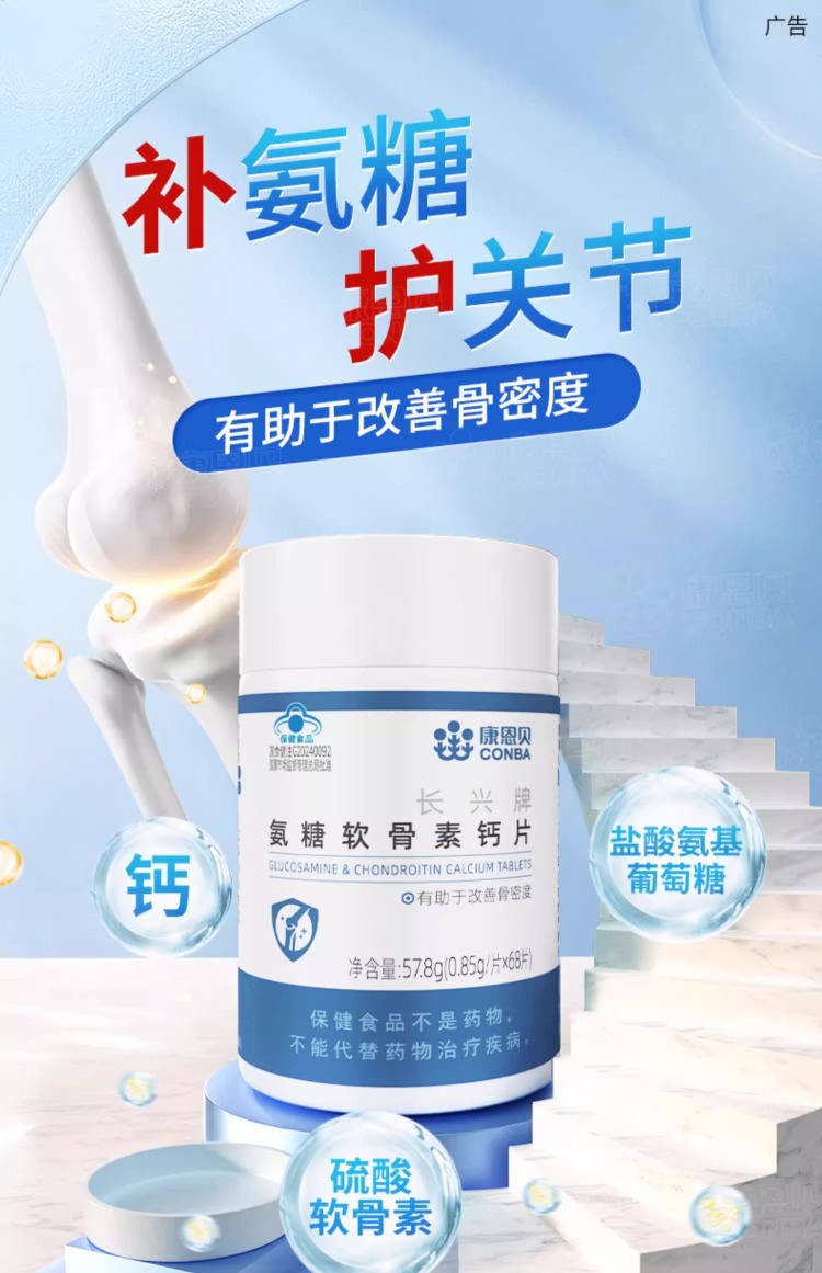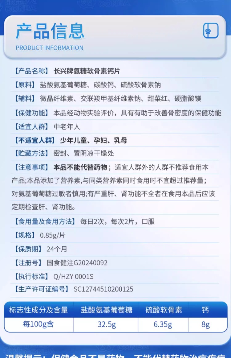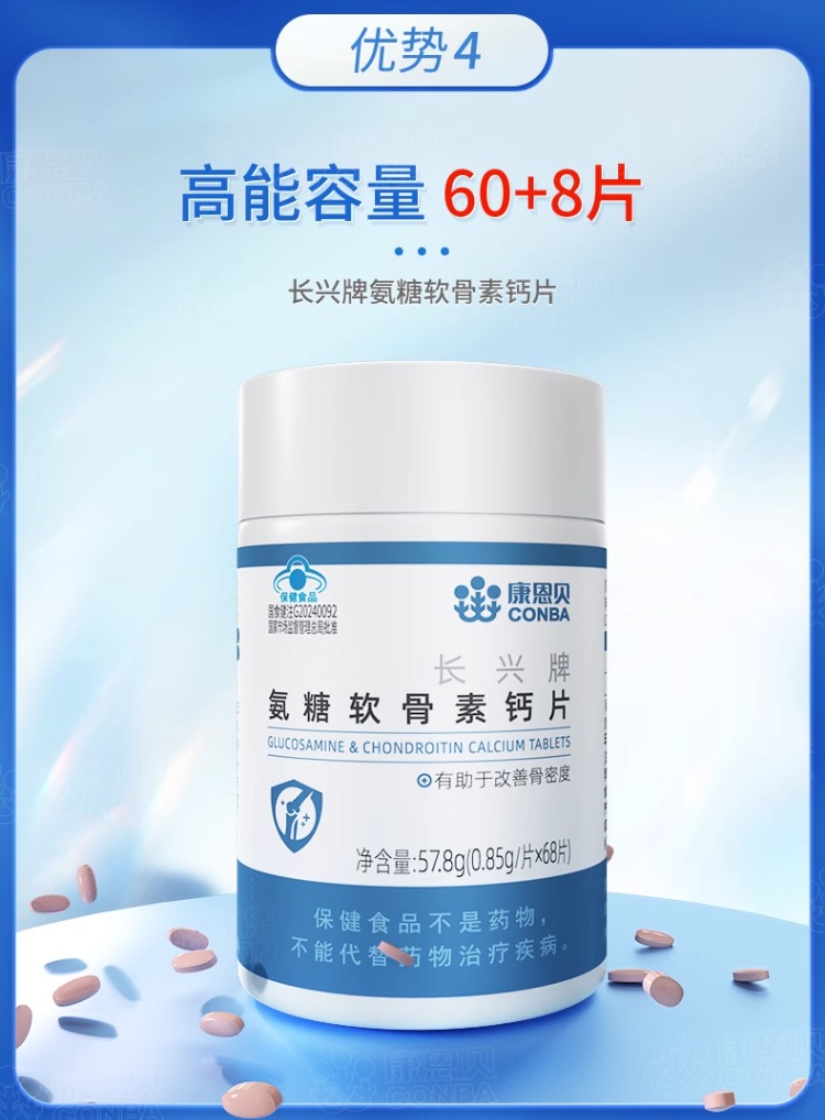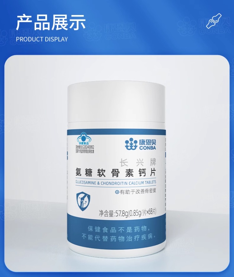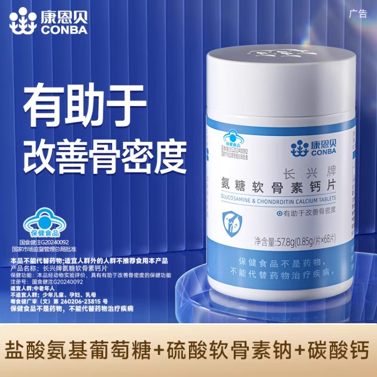 商品名称:CONBA/康恩贝长兴牌氨糖软骨素钙片68片