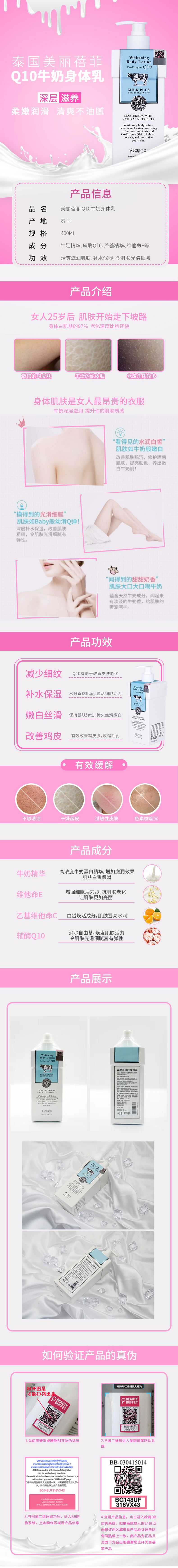 商品名称:泰国美丽蓓菲Q10牛奶身体乳女全身保湿滋润留香体润肤乳秋冬补水