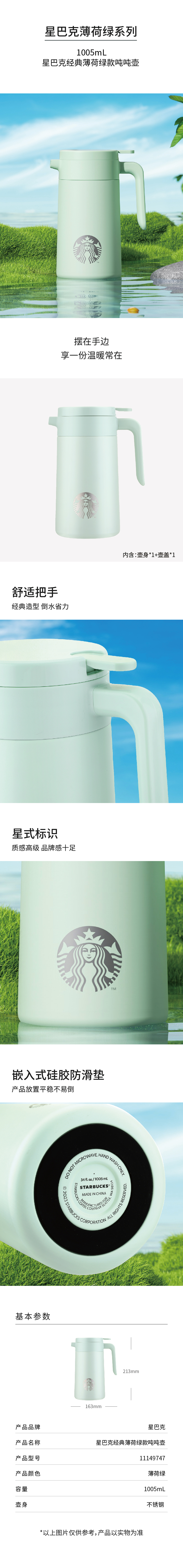 商品名称:STARBUCKS/星巴克1005毫升经典薄荷绿款吨吨壶11149747