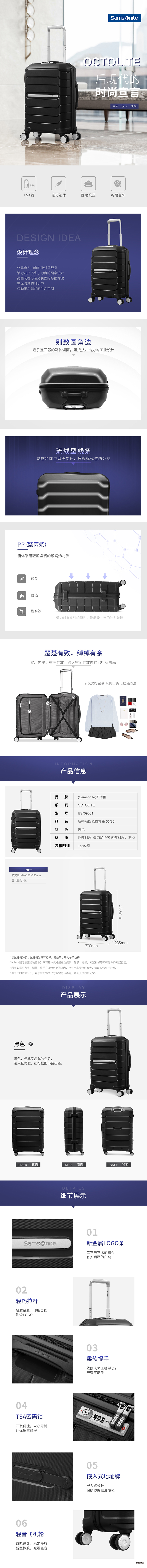 商品名称:Samsonite/新秀丽20寸四轮拉杆箱-黑色I72*09001