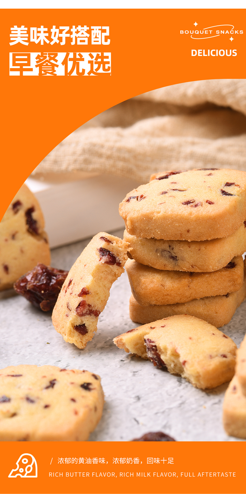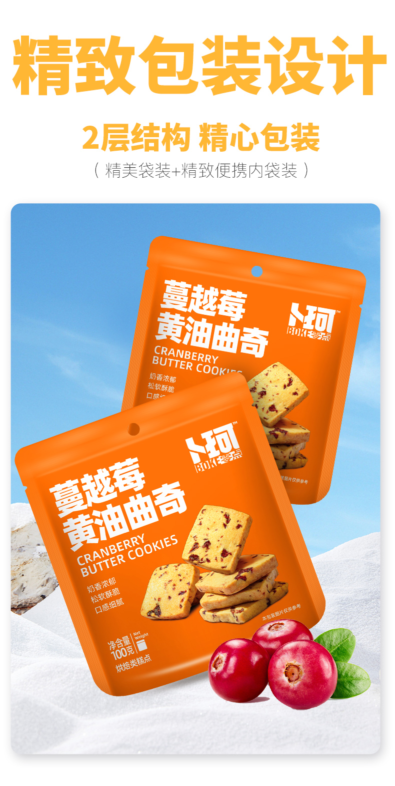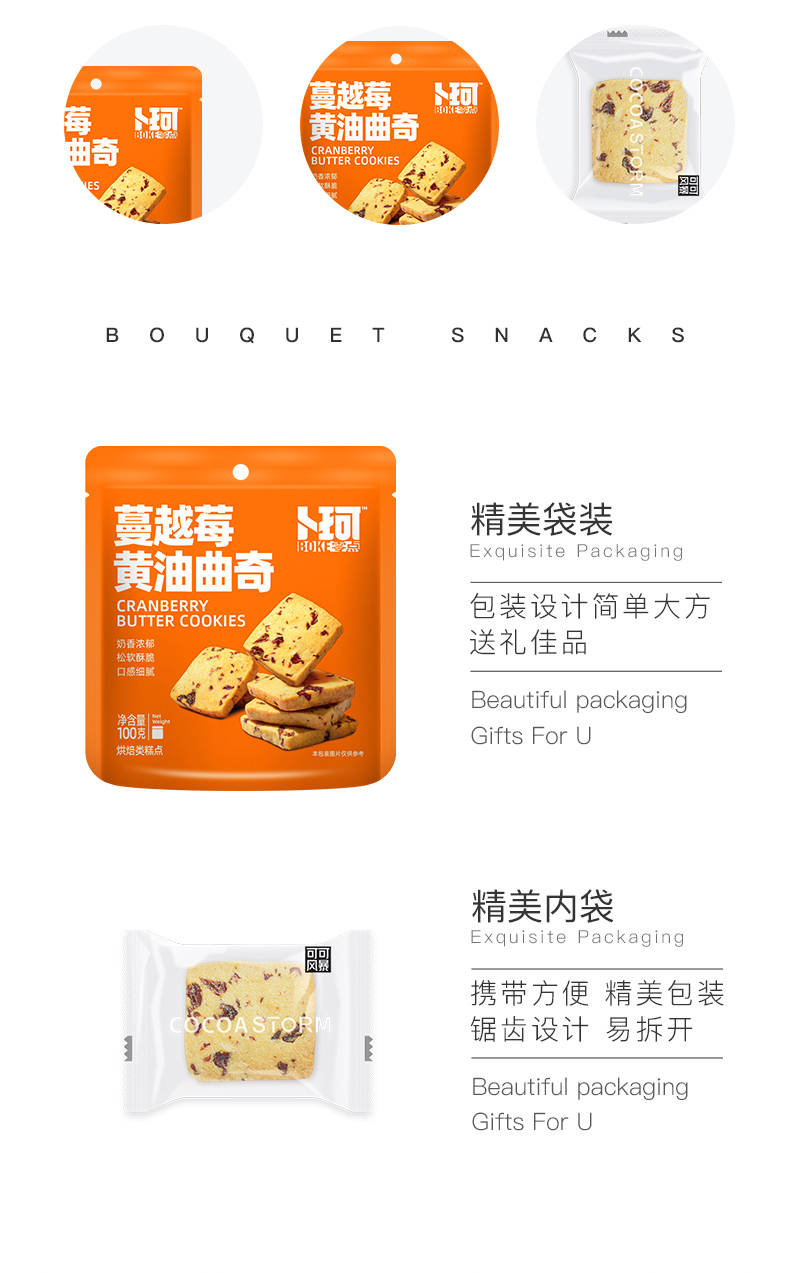 卜珂蔓越莓黄油曲奇饼干100g*6袋