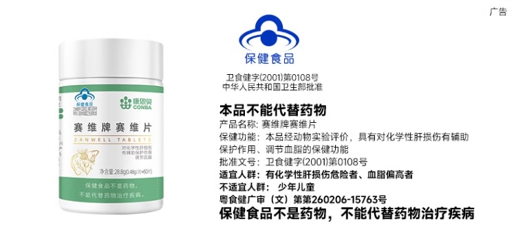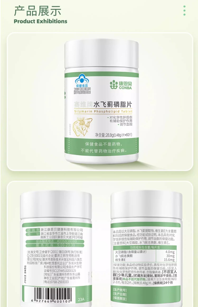 商品名称:CONBA/康恩贝赛维牌水飞蓟磷脂片60片