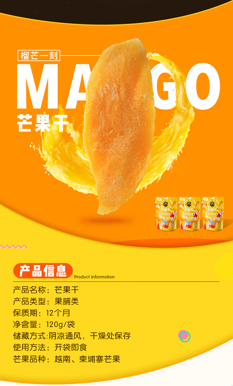 商品名称:榴芒一刻芒果干120g*3袋