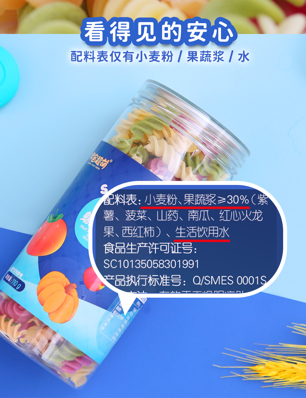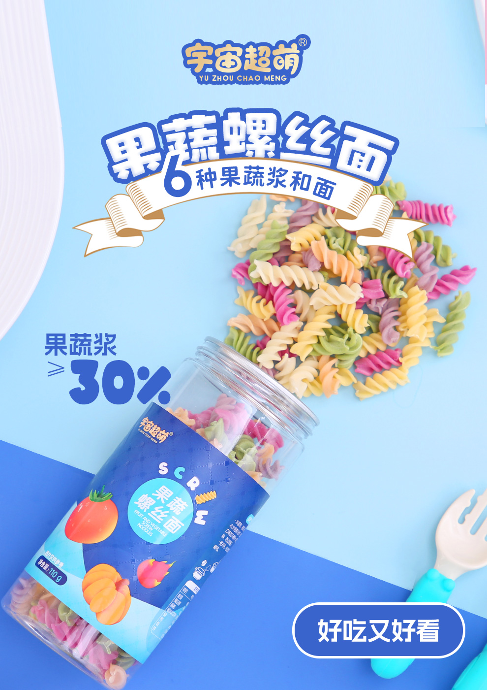 商品名称:宇宙超萌儿童辅食果蔬螺丝面110g