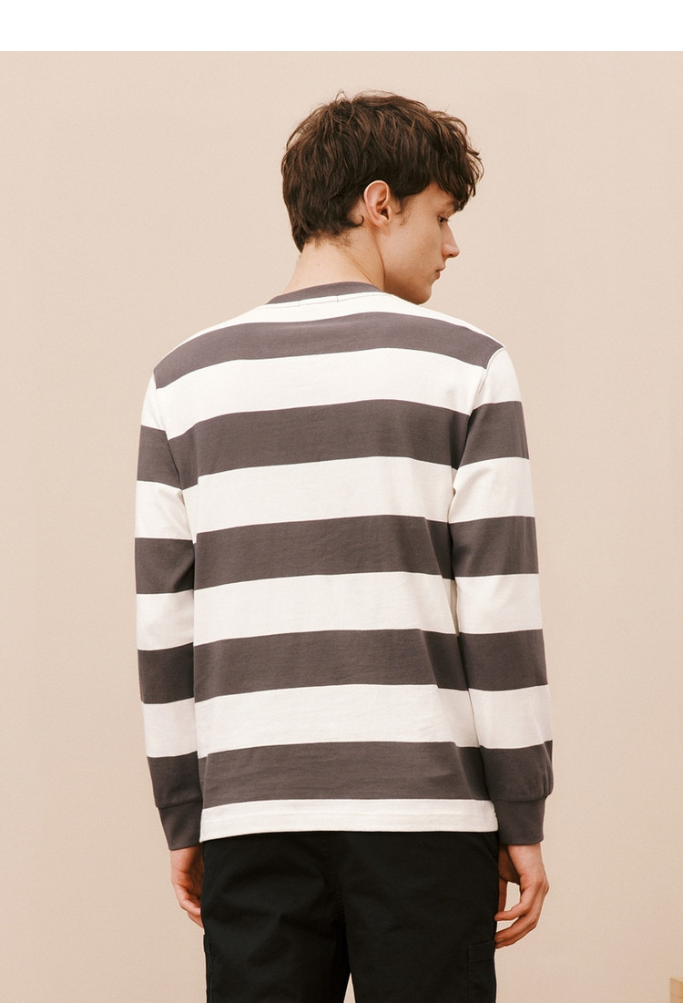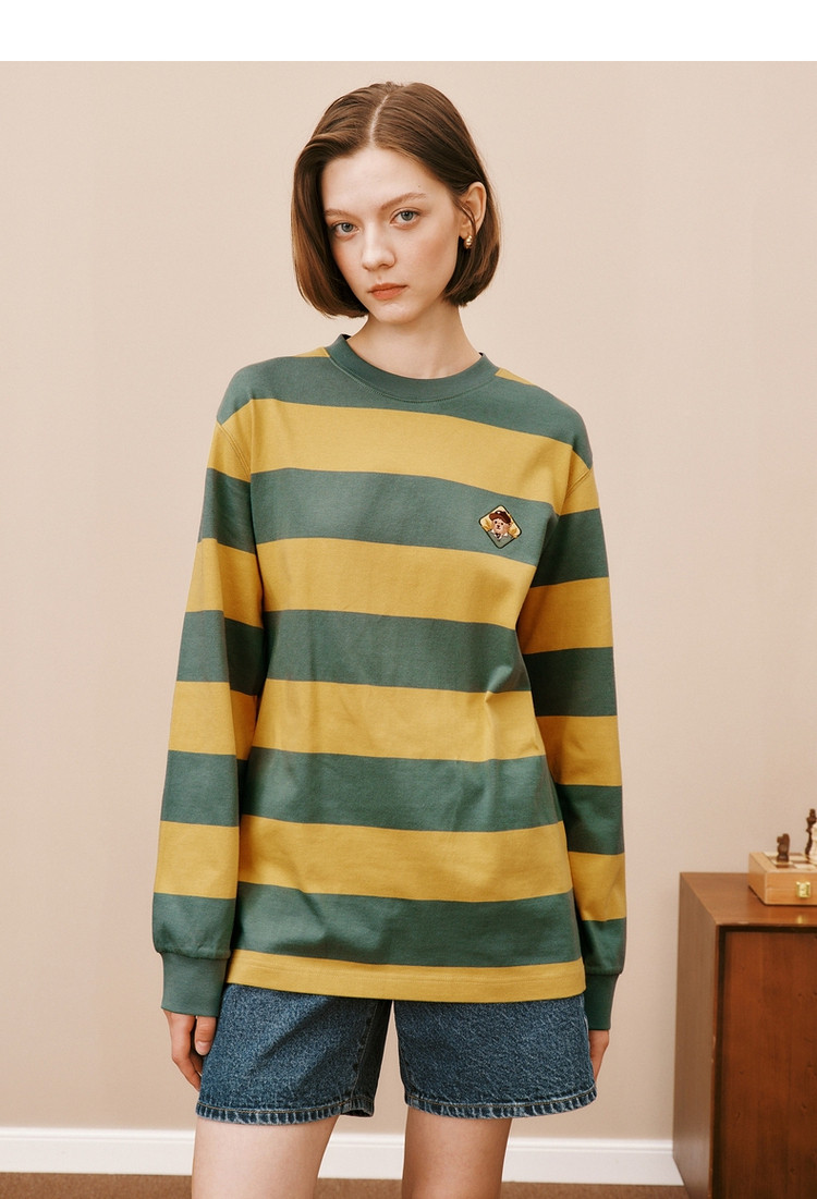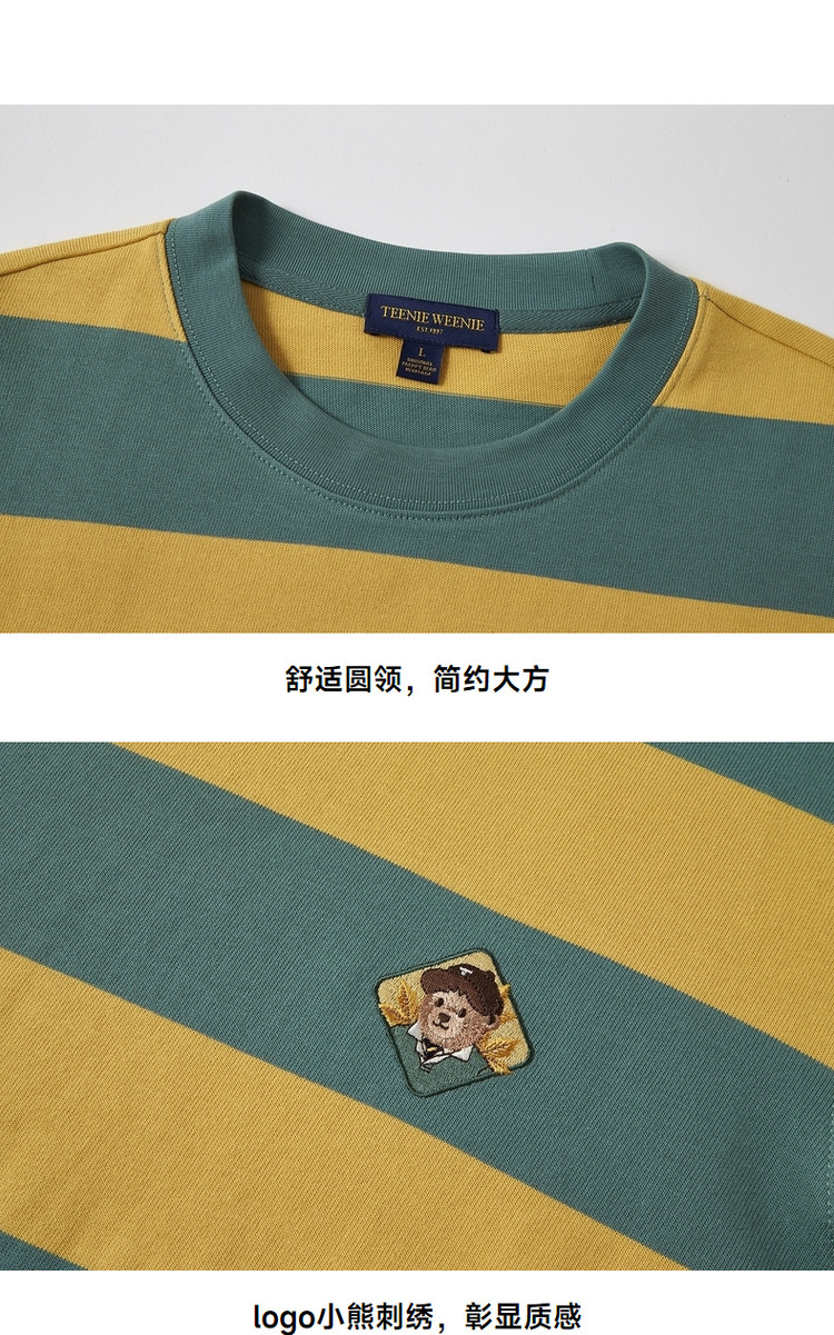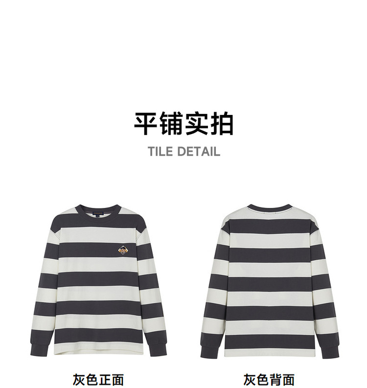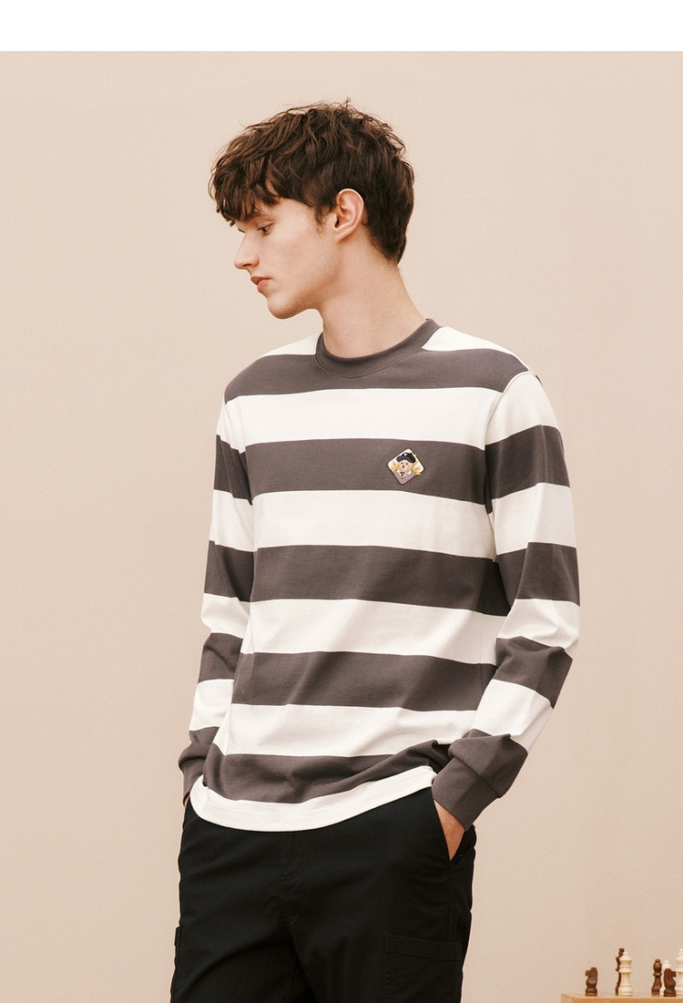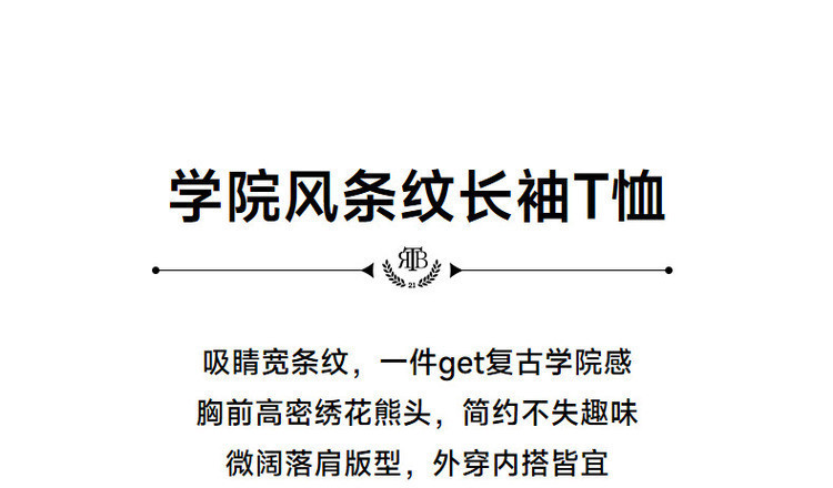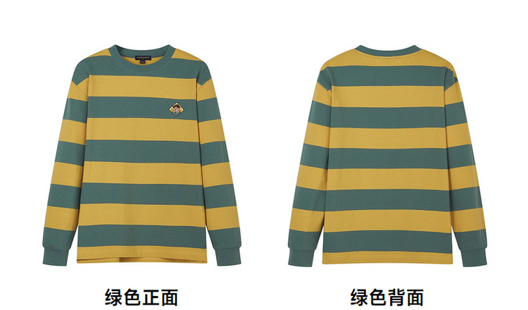 商品名称:小熊男装条纹T恤复古学院风长袖春季情侣款打底上衣 368129