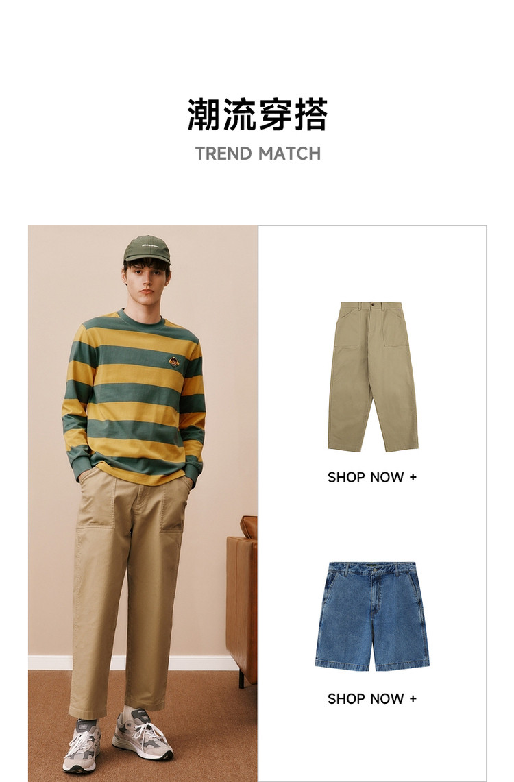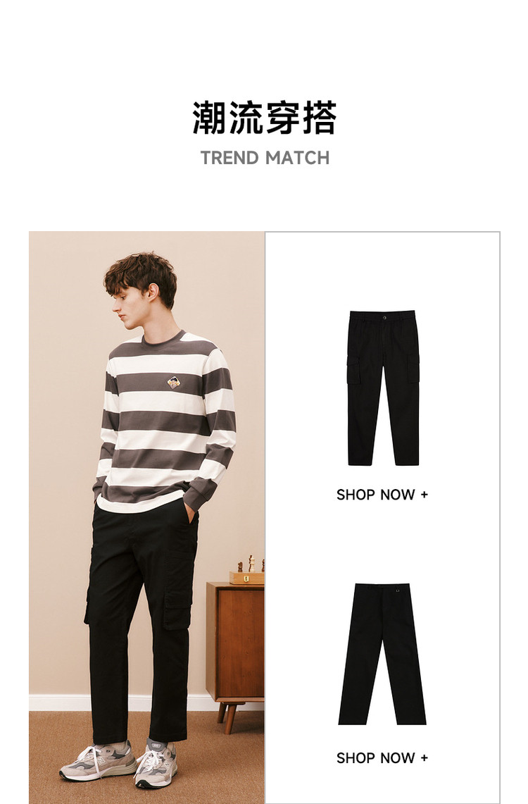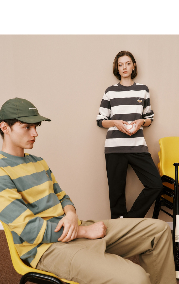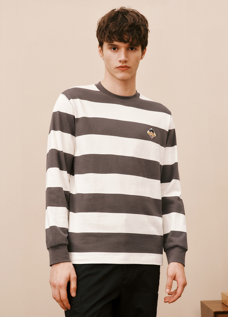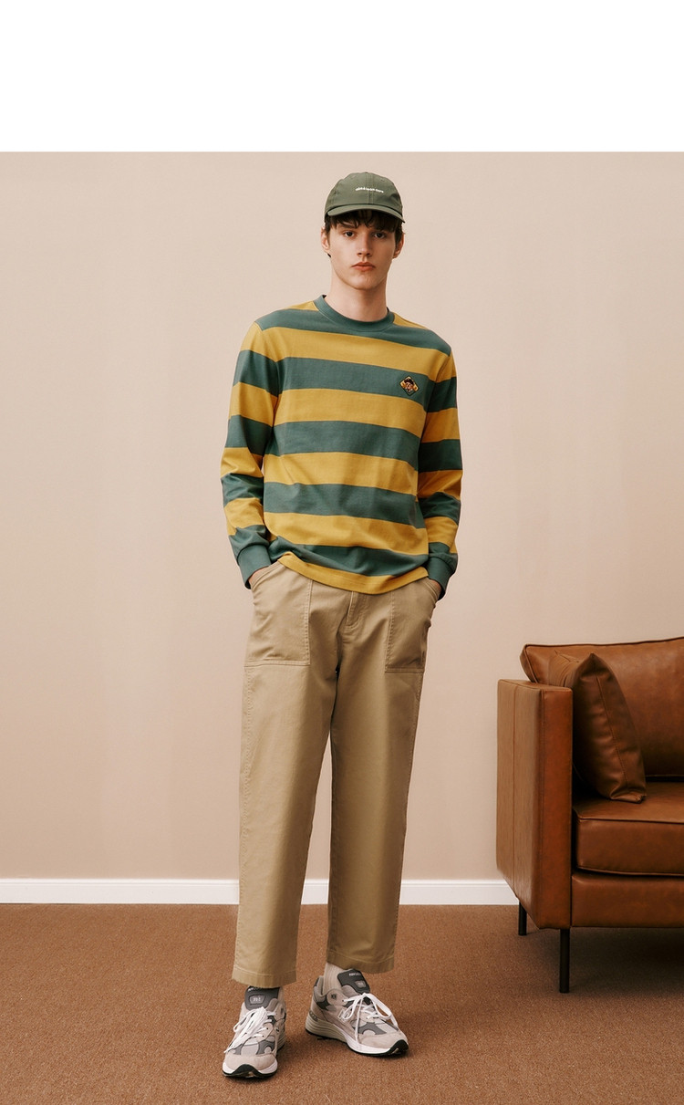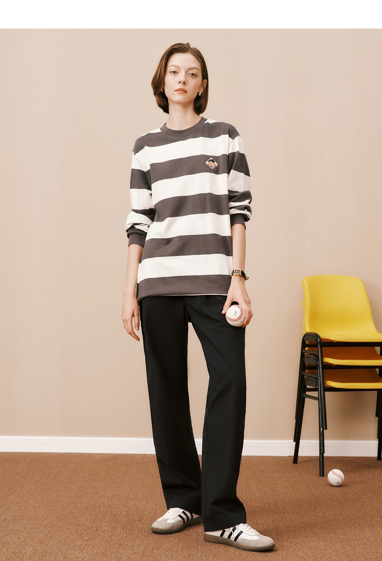 商品名称:小熊男装条纹T恤复古学院风长袖春季情侣款打底上衣 368129