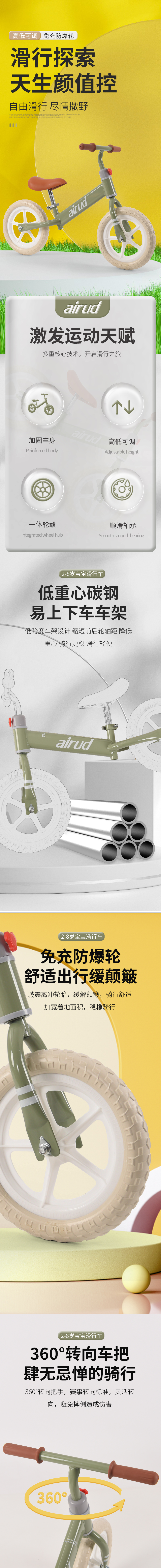 【京东/顺丰配送】airud/艾瑞迪儿童平衡车-果绿色AMS711-6