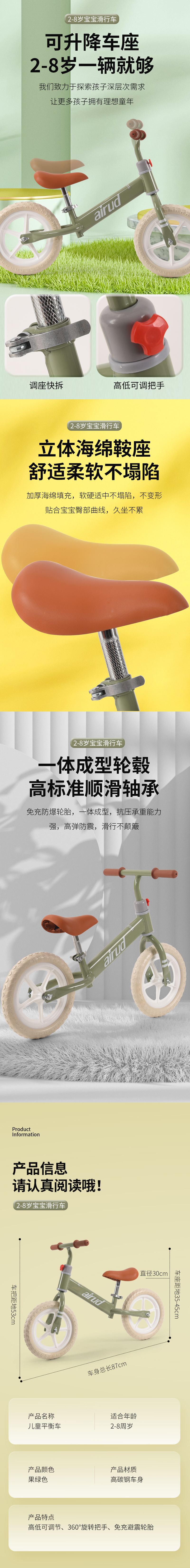 商品名称:【京东/顺丰配送】airud/艾瑞迪儿童平衡车-果绿色AMS711-6