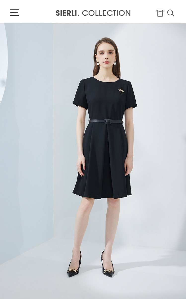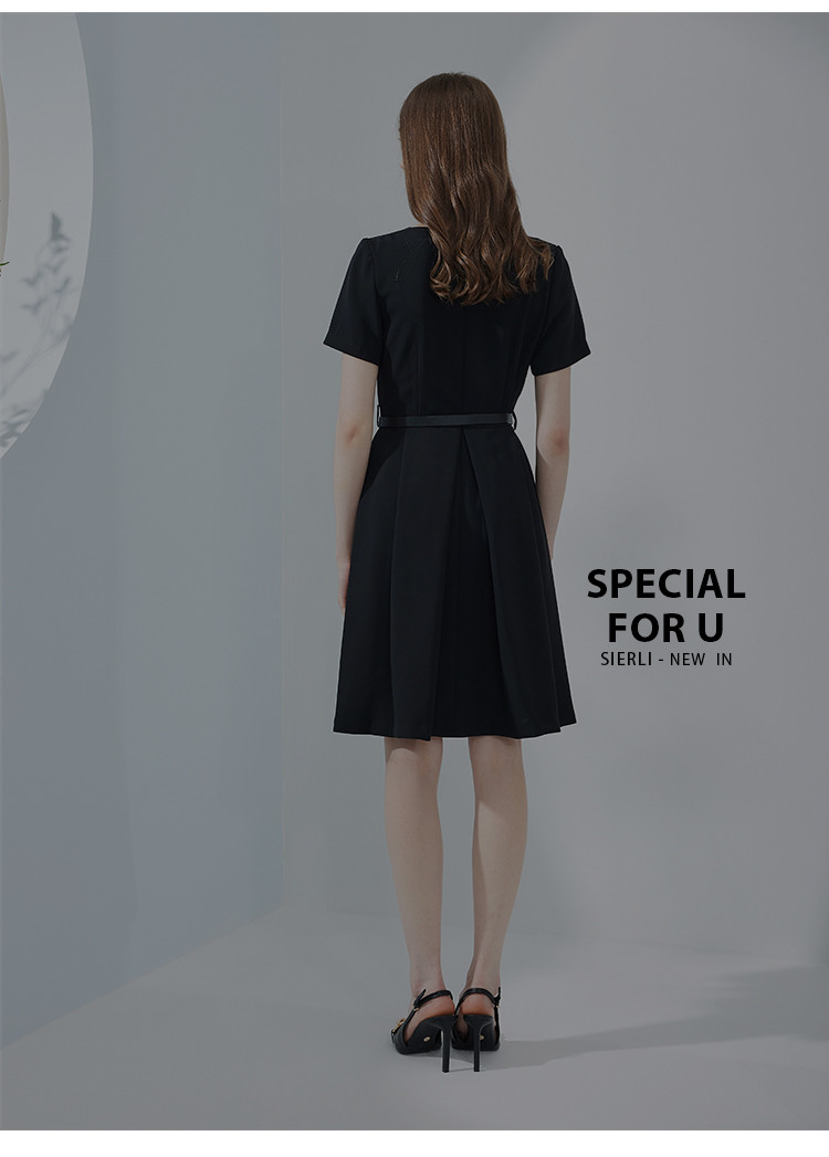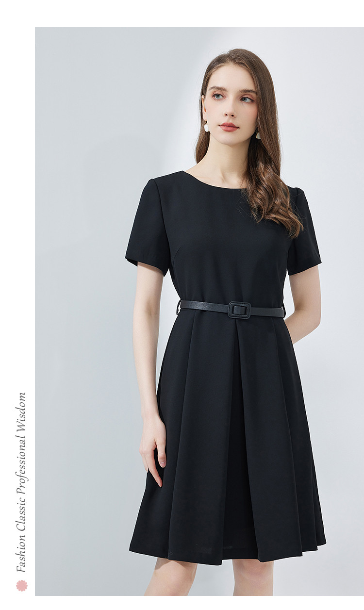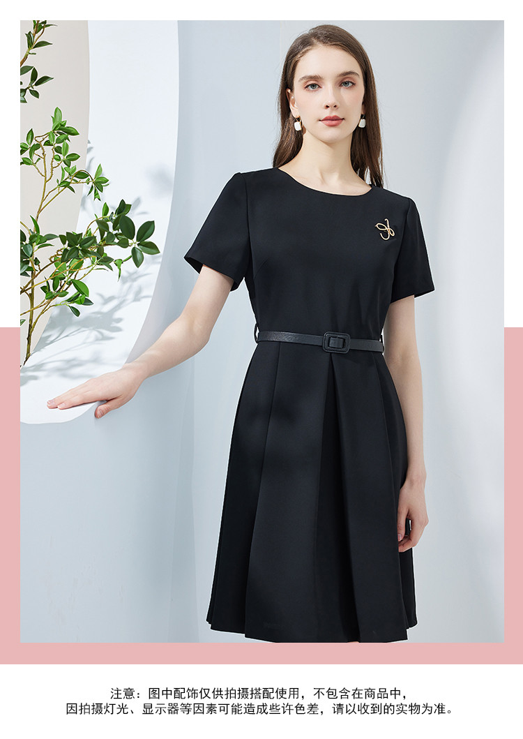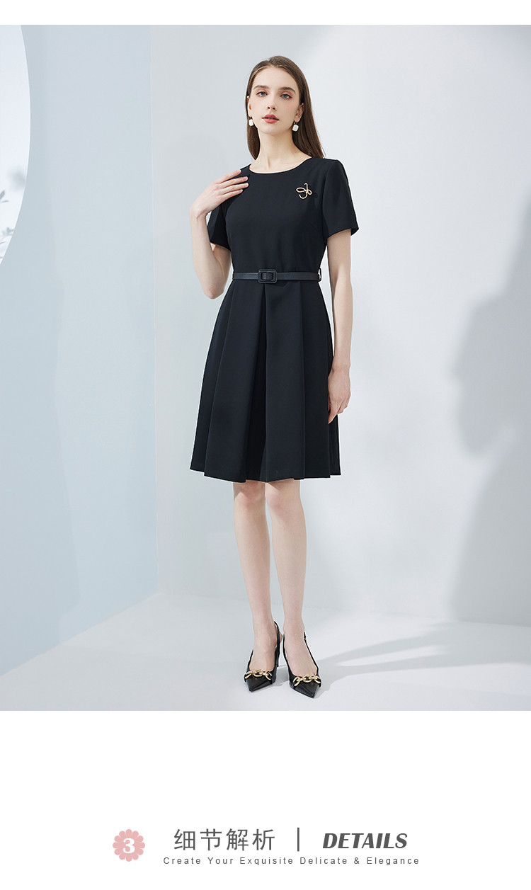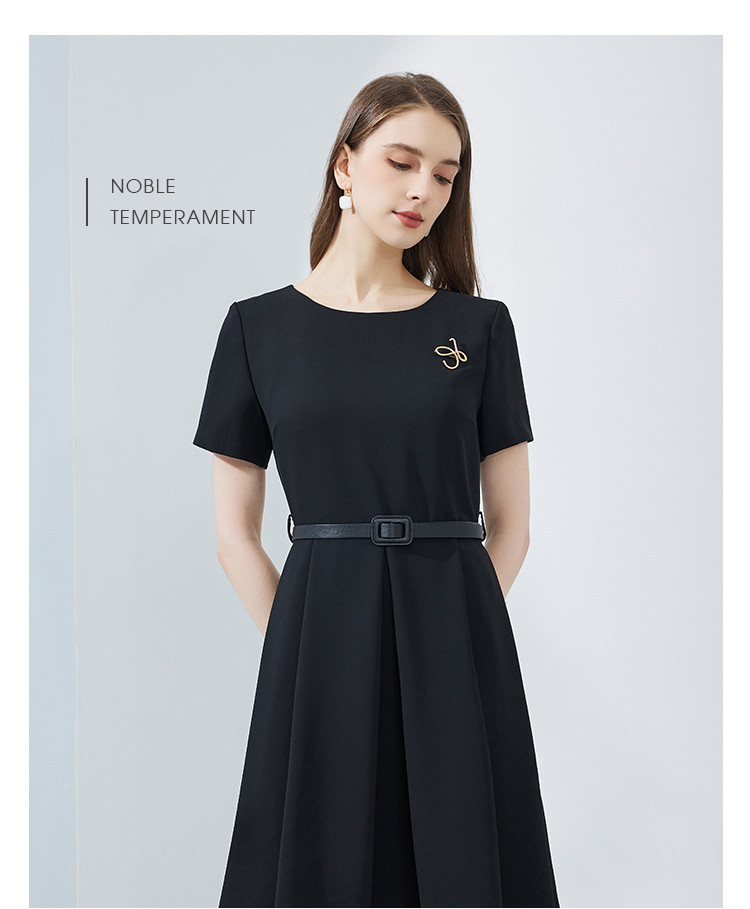 商品名称:夏季赫本风简约时尚小黑裙腰带胸针气质小晚礼服连衣裙 327903
