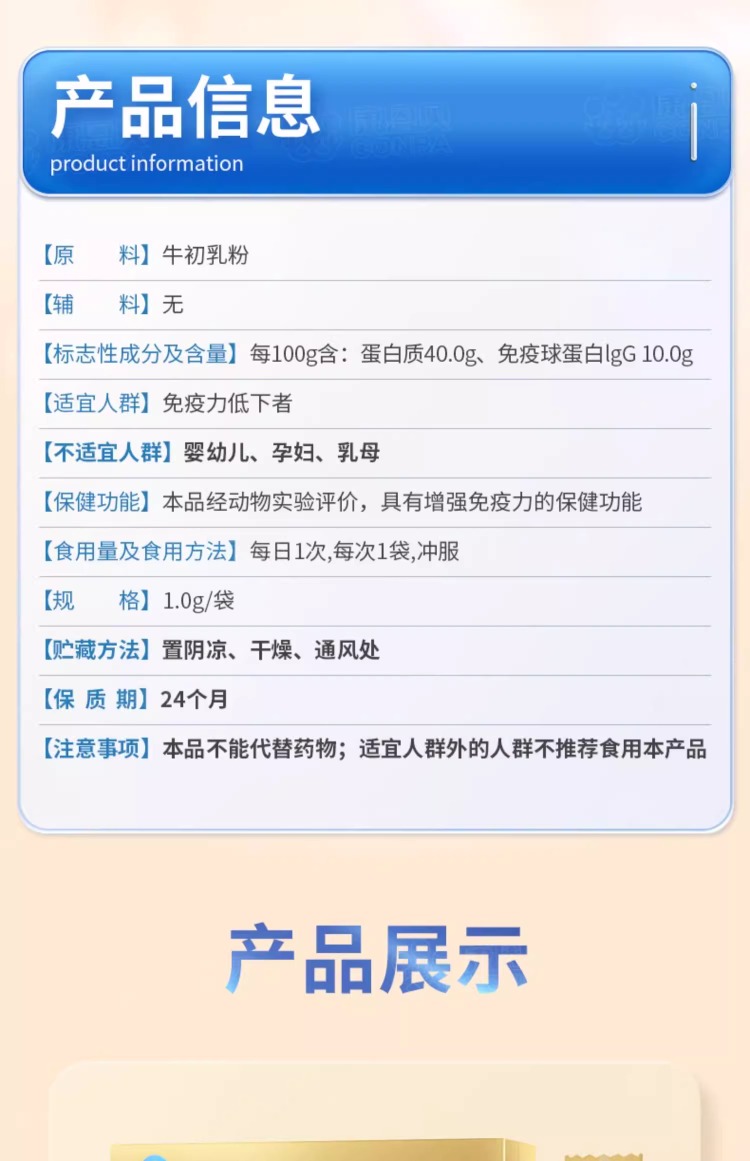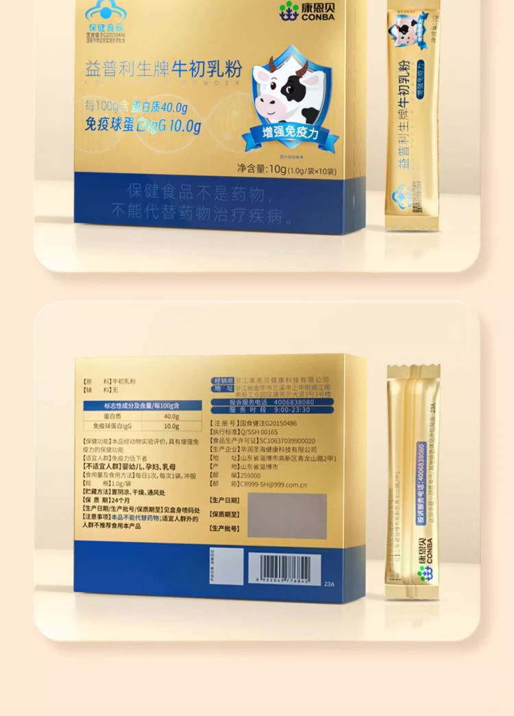 商品名称:CONBA/康恩贝益普利生牌牛初乳粉10g