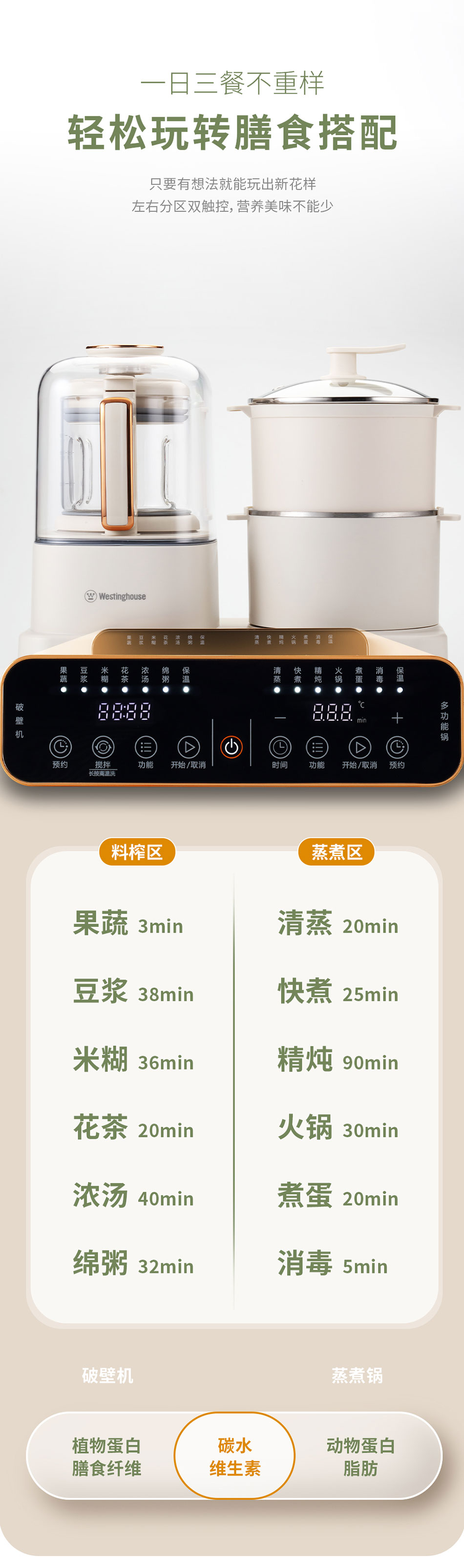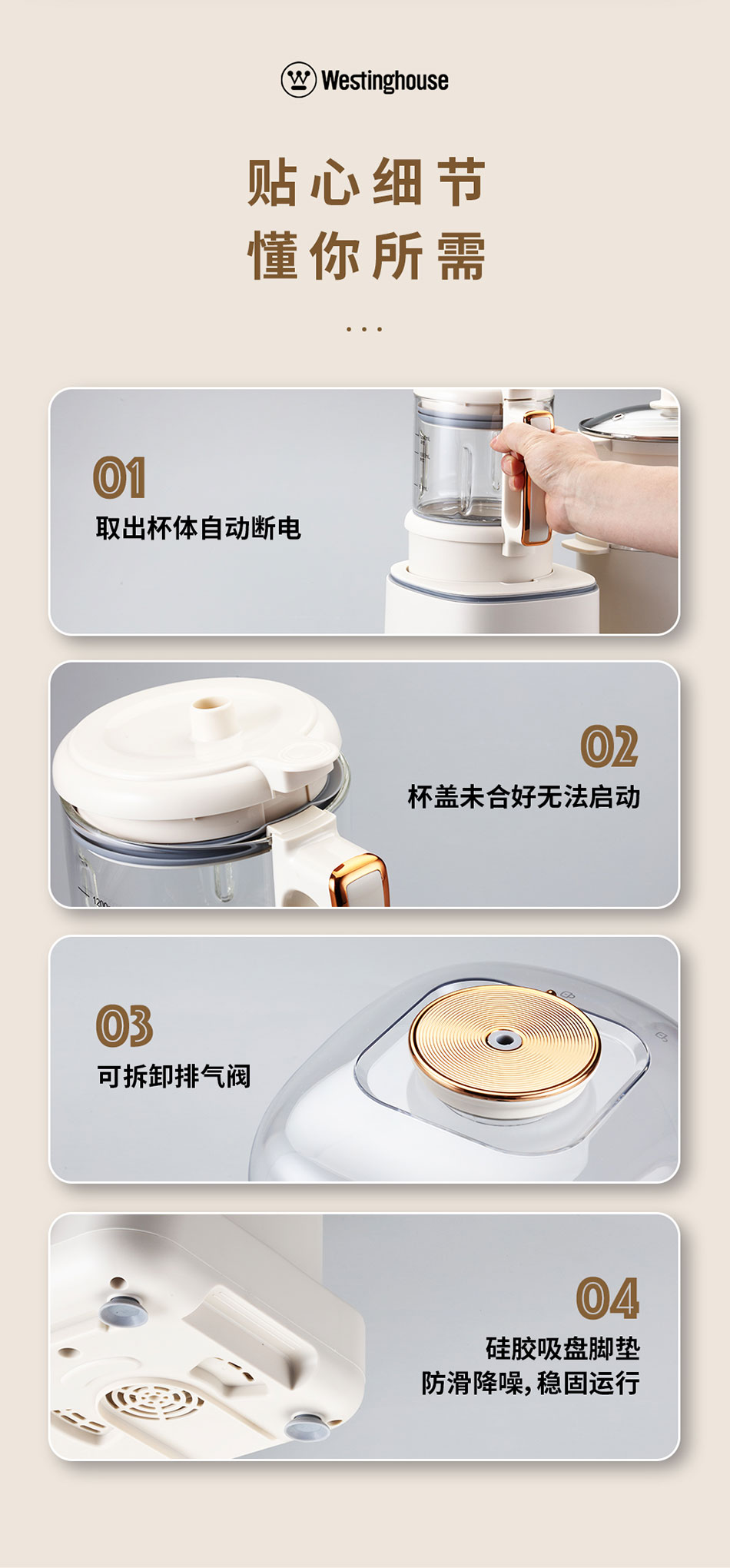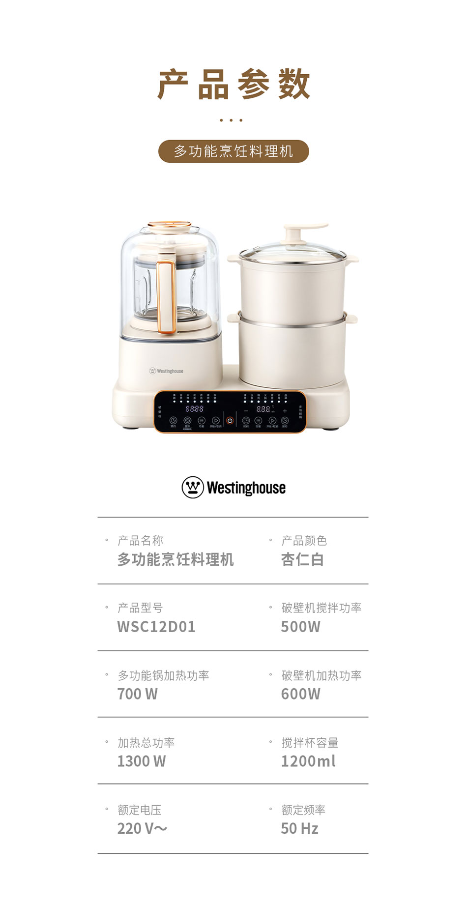 商品名称:Westinghouse/西屋1200毫升多功能烹饪料理机-杏仁白WSC12D01