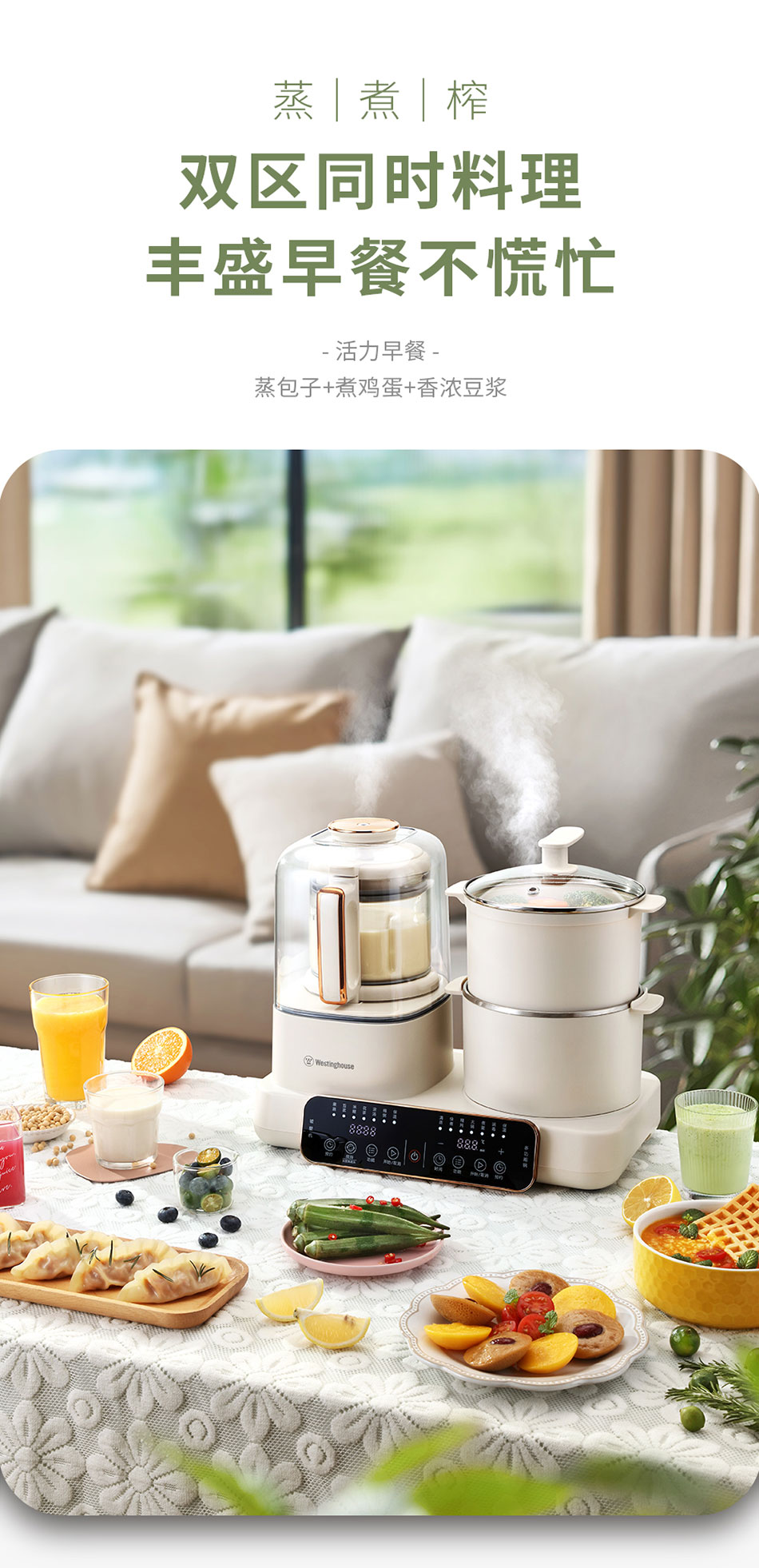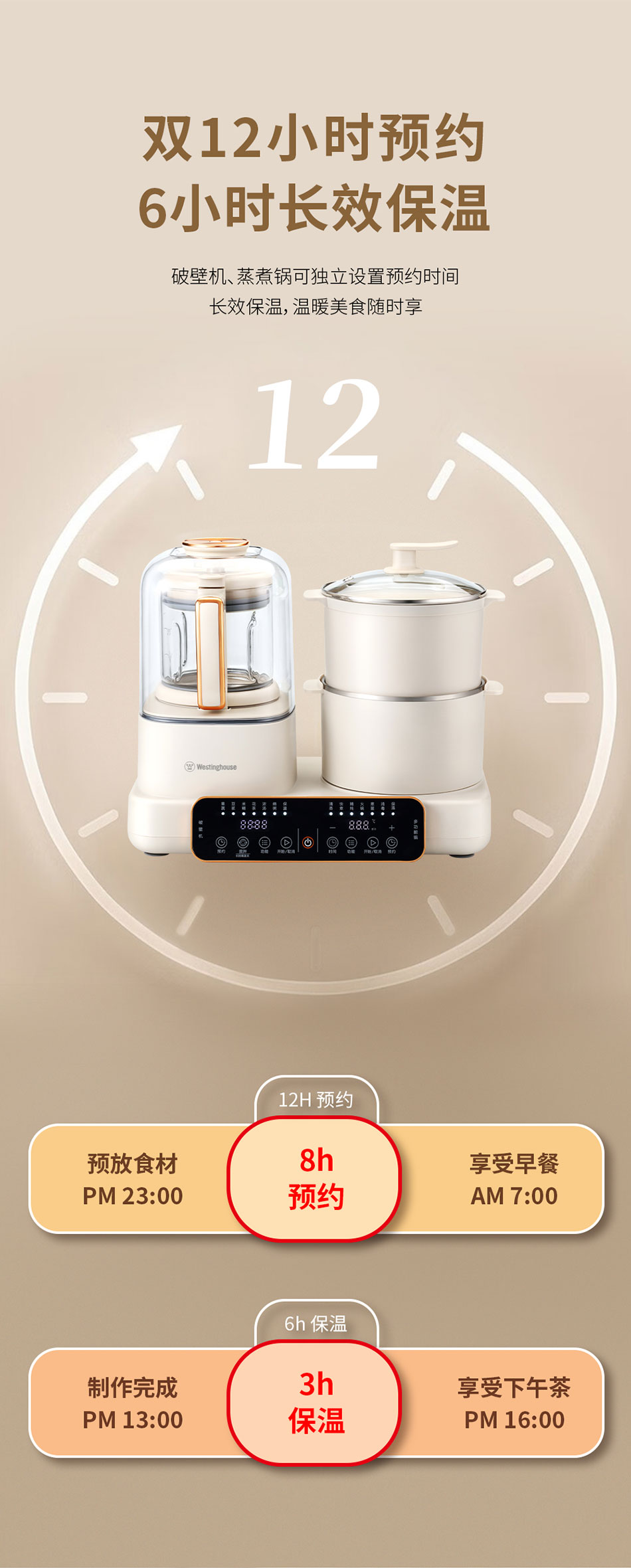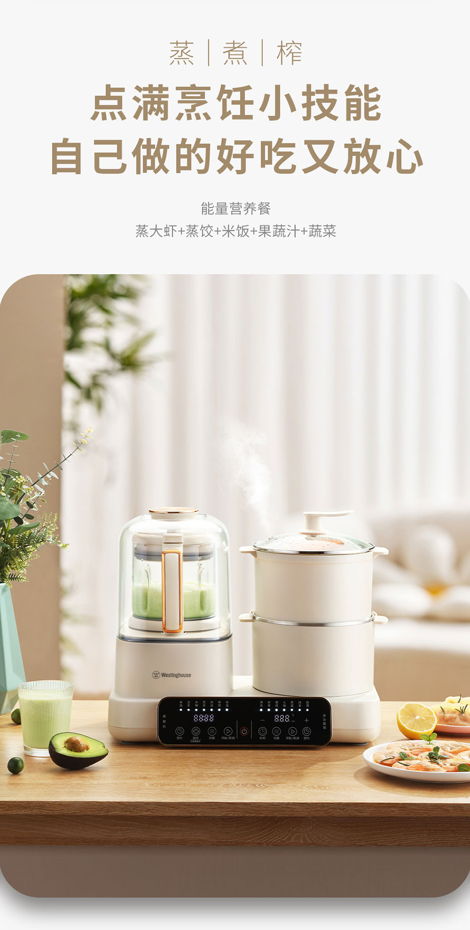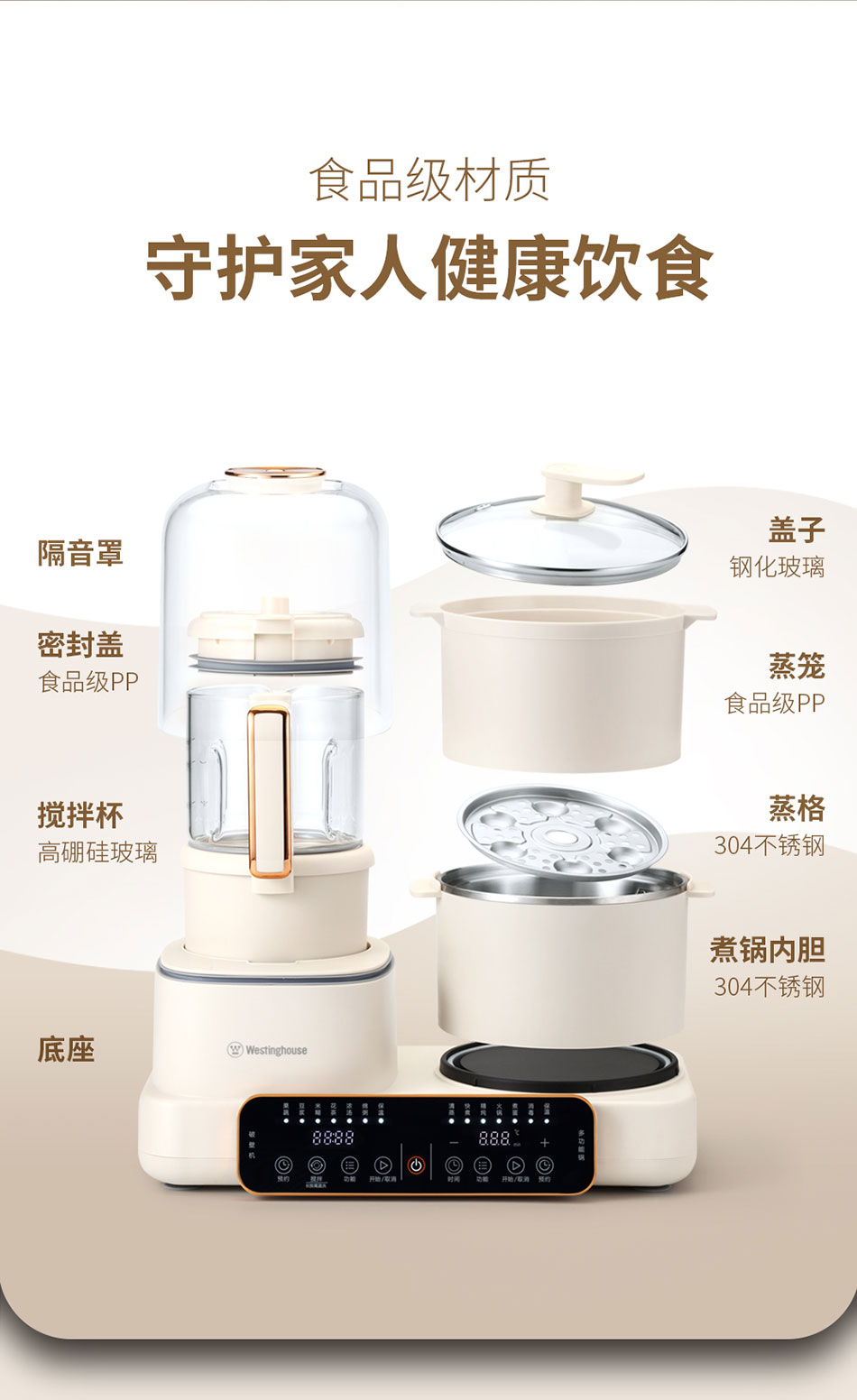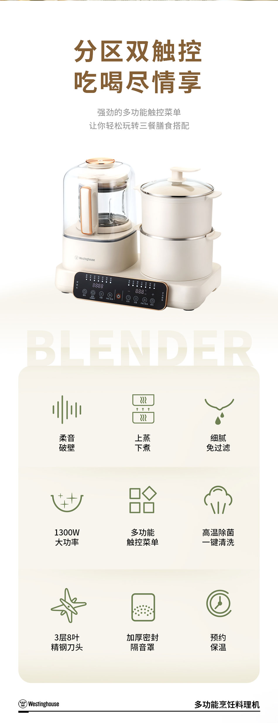 Westinghouse/西屋1200毫升多功能烹饪料理机-杏仁白WSC12D01