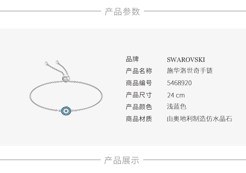 商品名称:Swarovski 施华洛世奇 女士LUCKILY神秘元素恶魔之眼幸运守护手链手镯