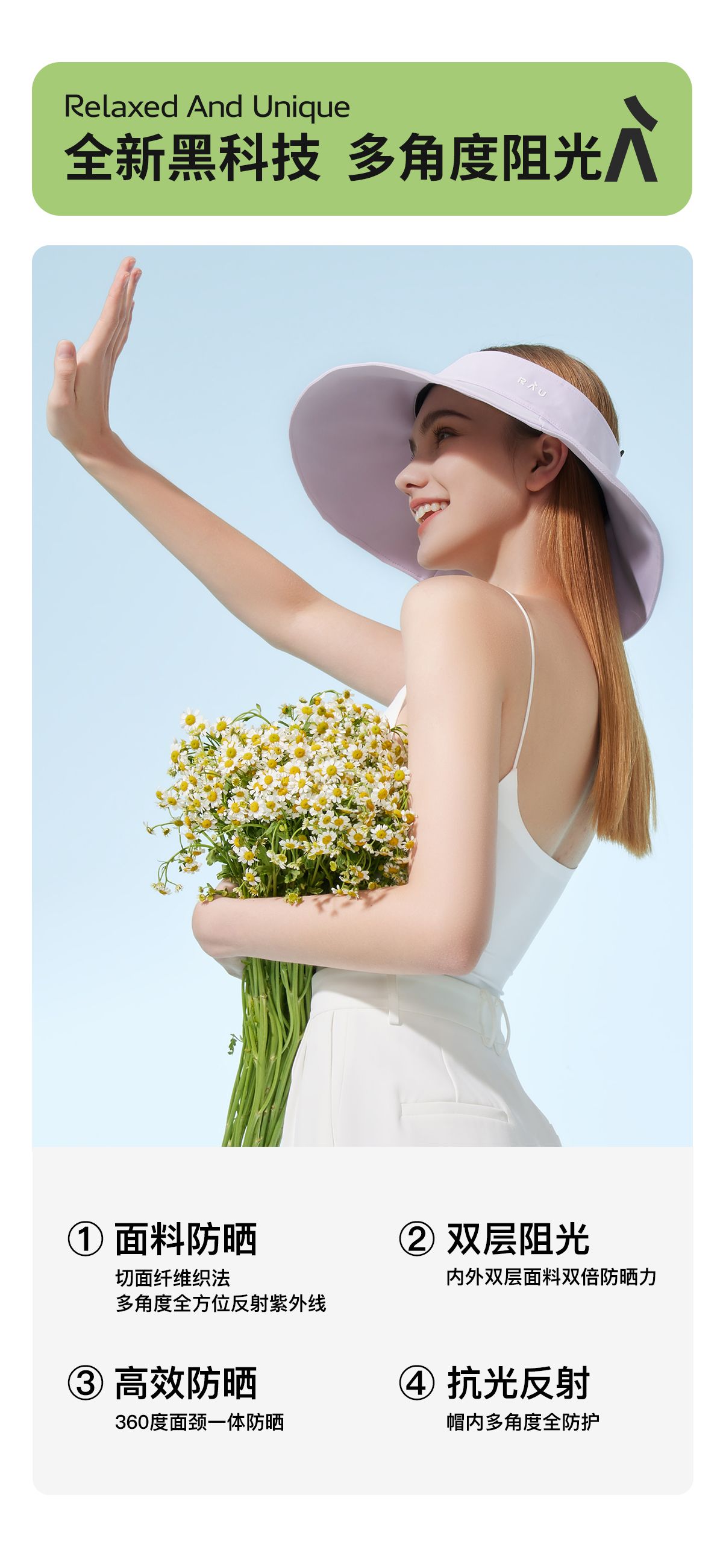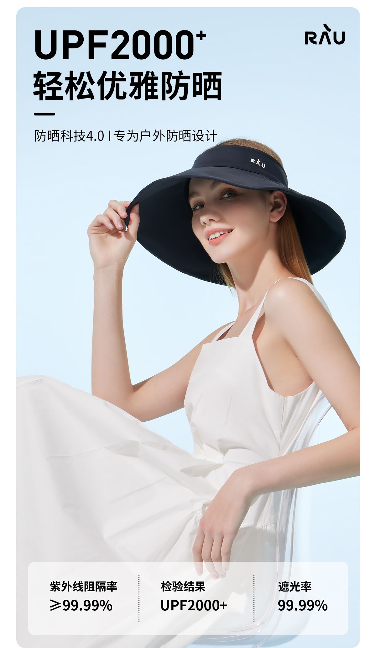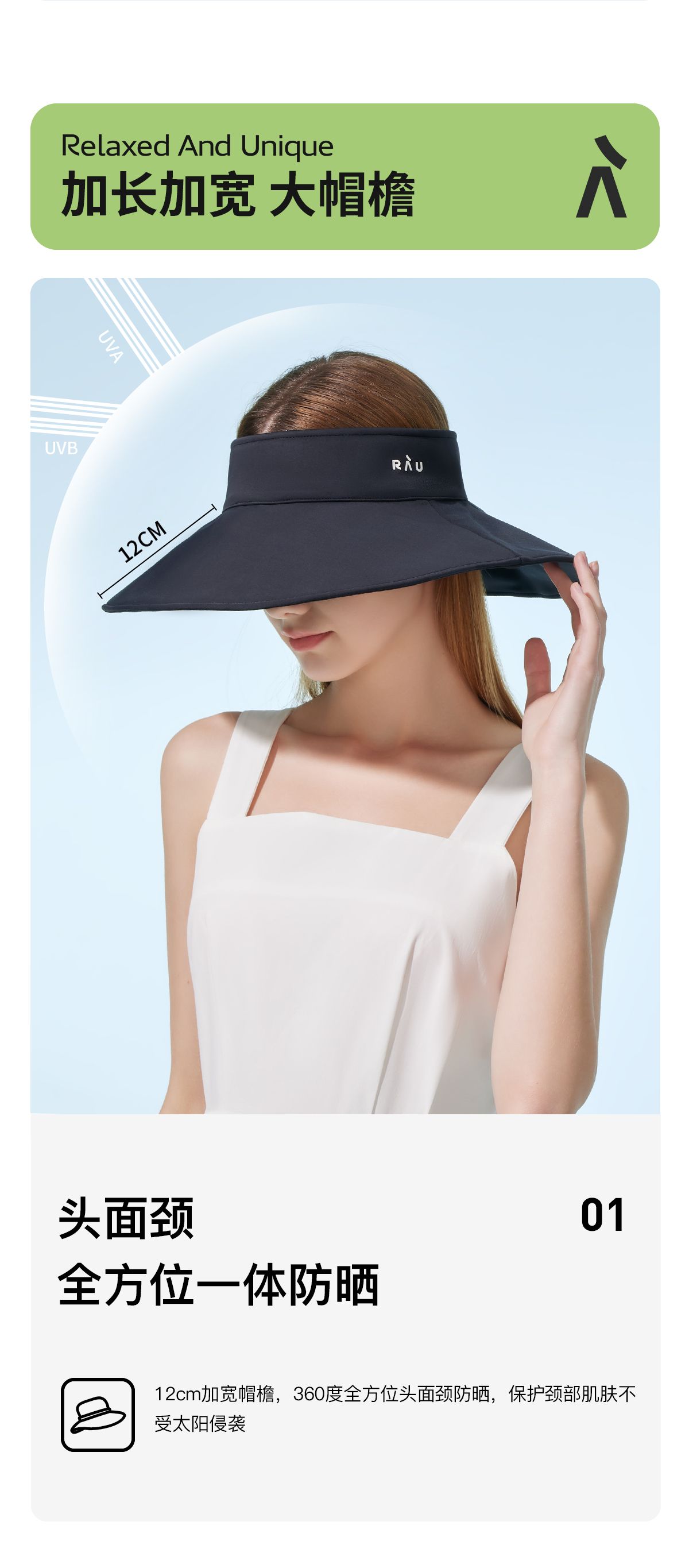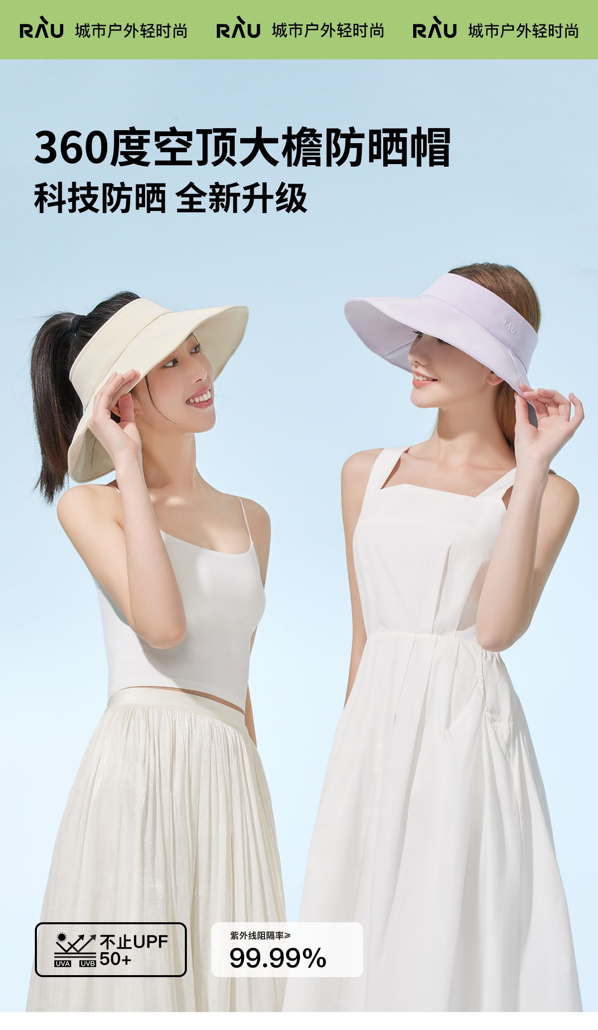 商品名称:RAU360度空顶大檐防晒帽 阻隔99.99%紫外线