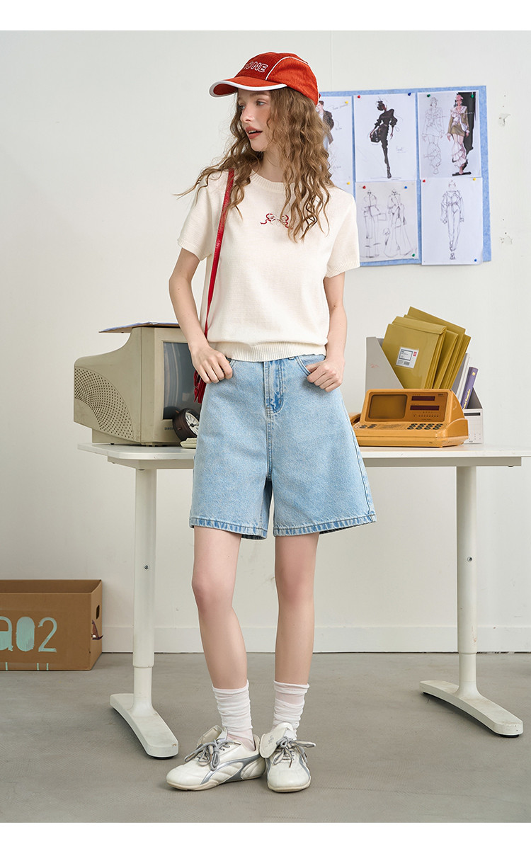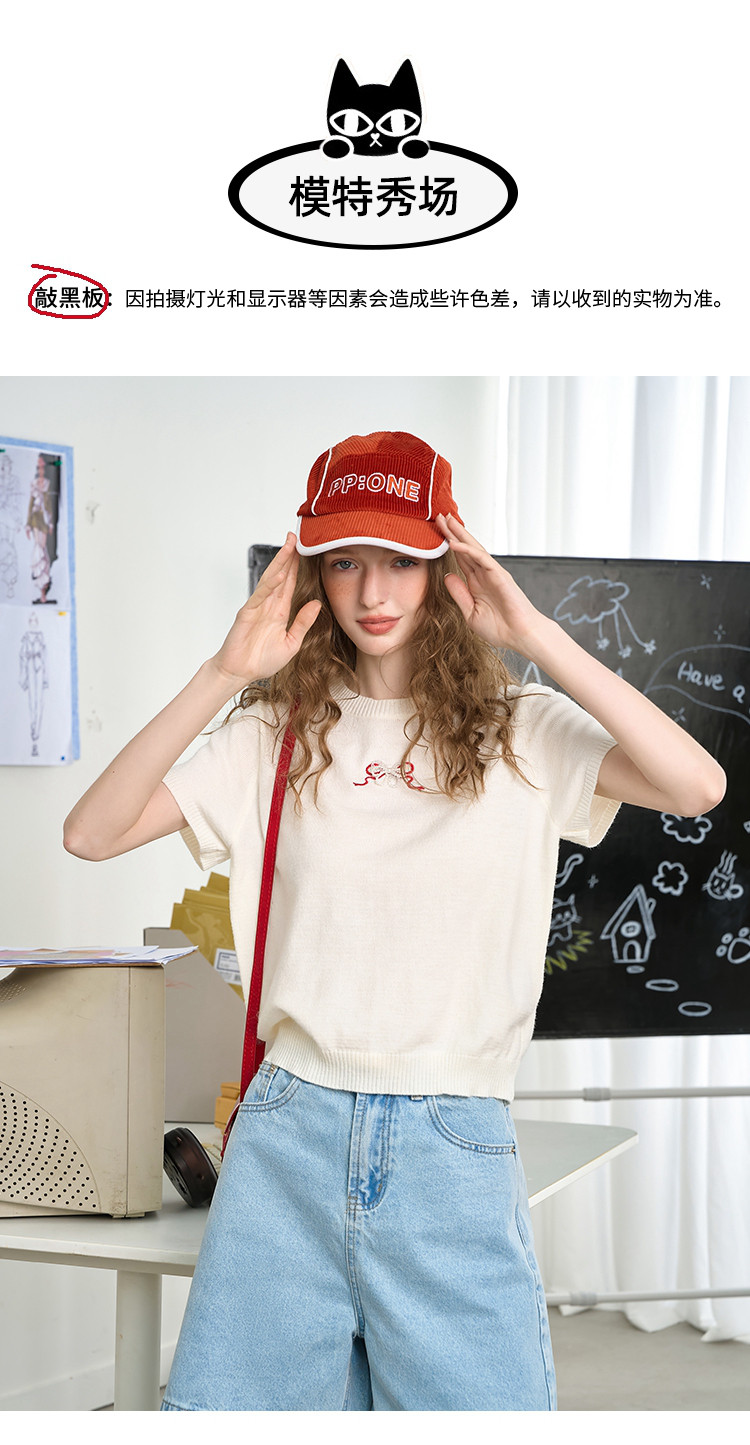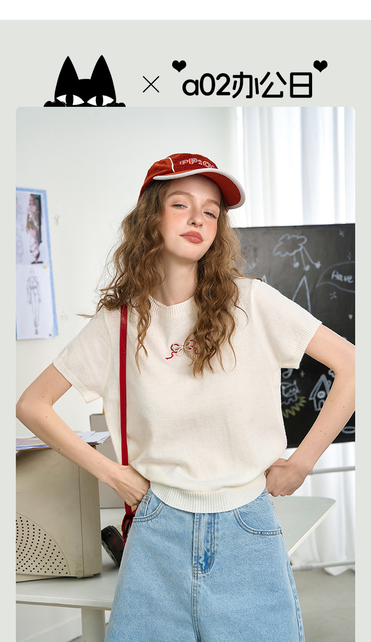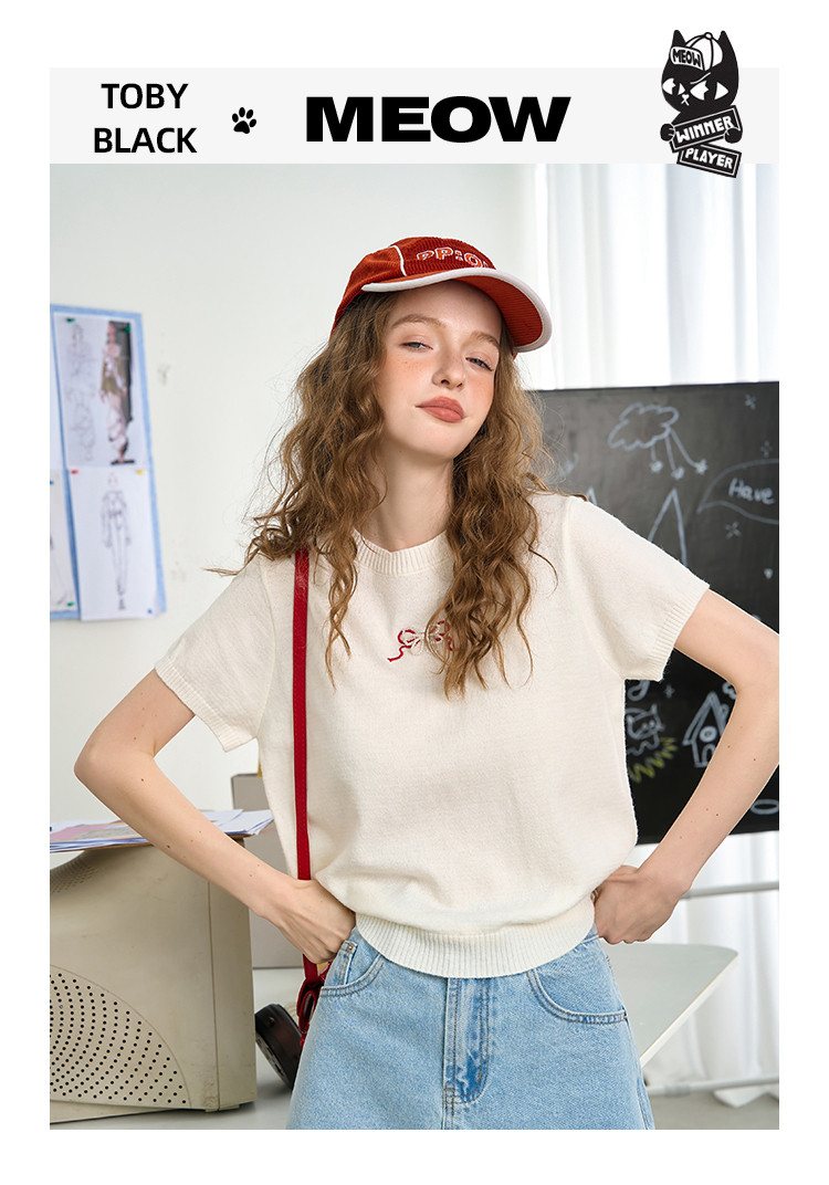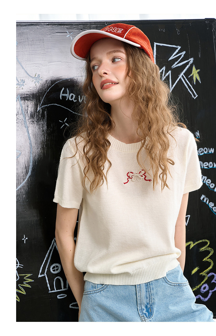 商品名称:韩系后背镂空蝴蝶结短袖上衣2025夏季休闲百搭女式针织衫 459293