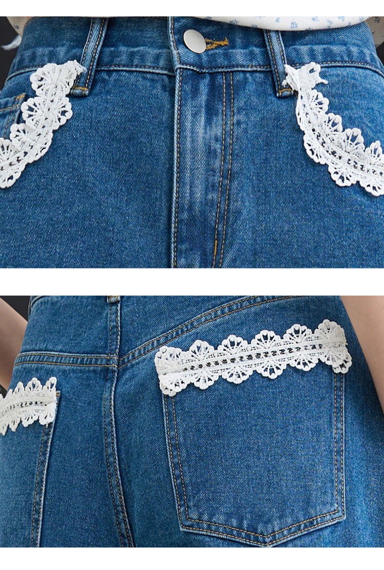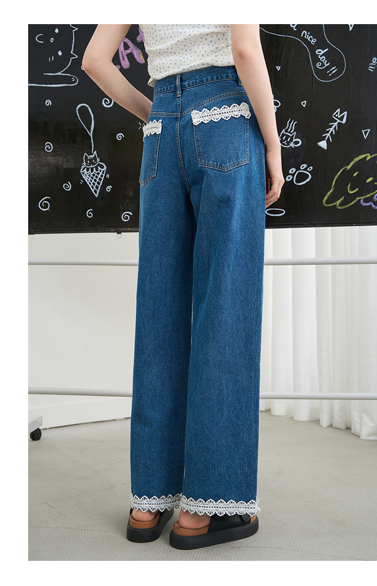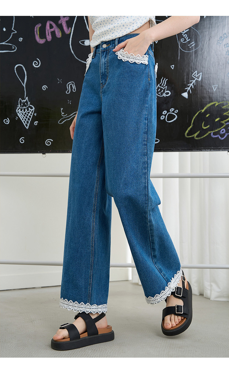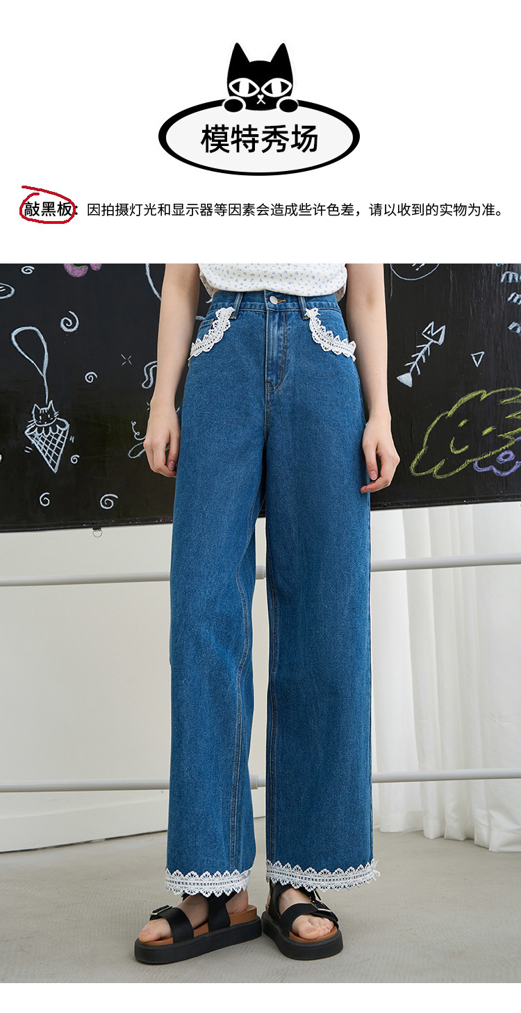 商品名称:韩版百搭花边蕾丝日系宽松阔腿裤2025夏季高腰显瘦女式牛仔裤 848733