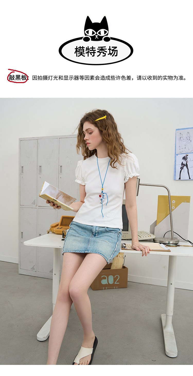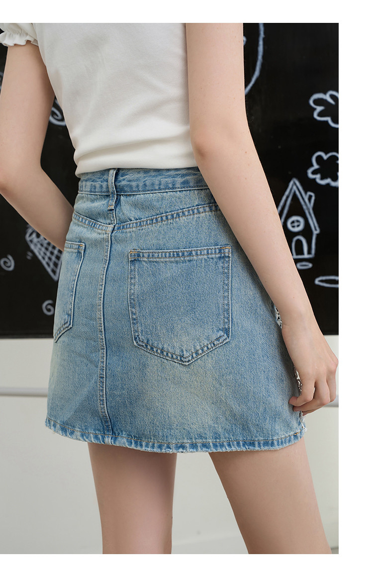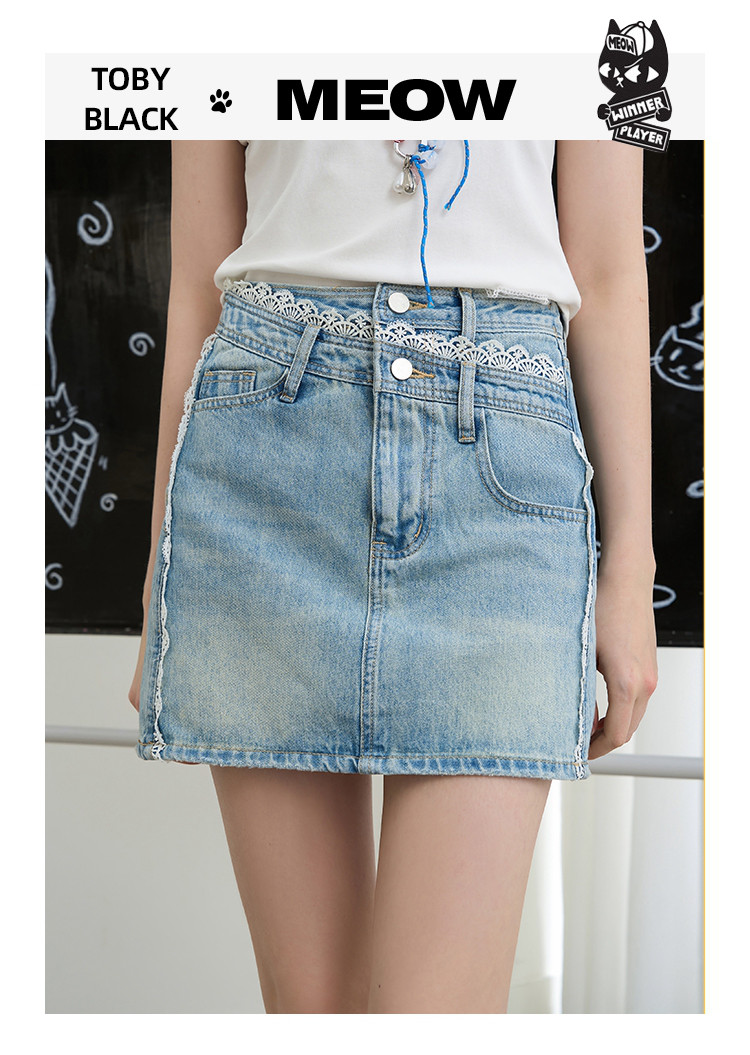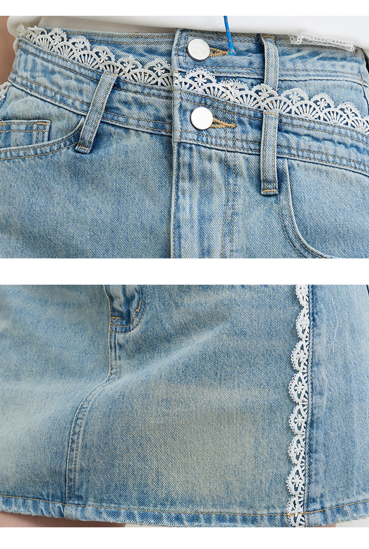 商品名称:设计感蕾丝文艺风拼接牛仔半身裙2025夏季百搭休闲半截裙 922461