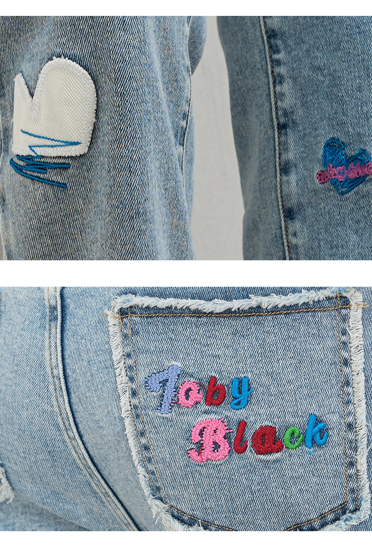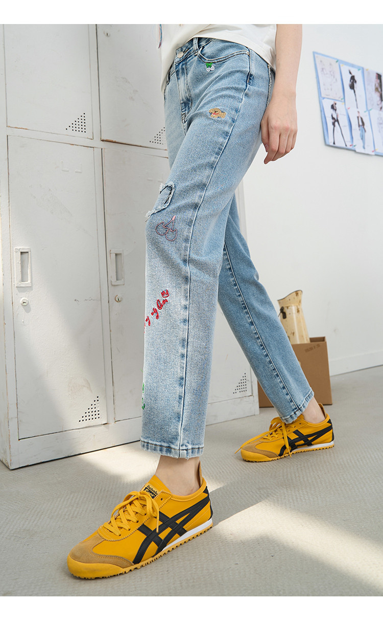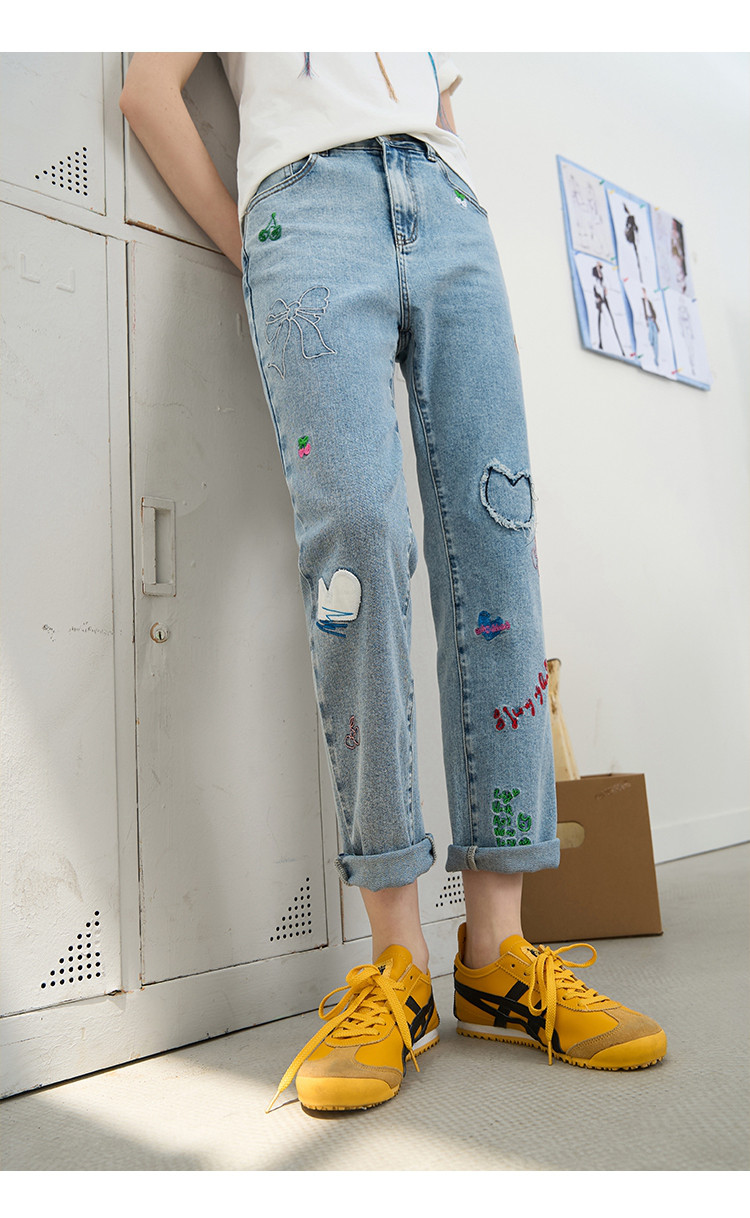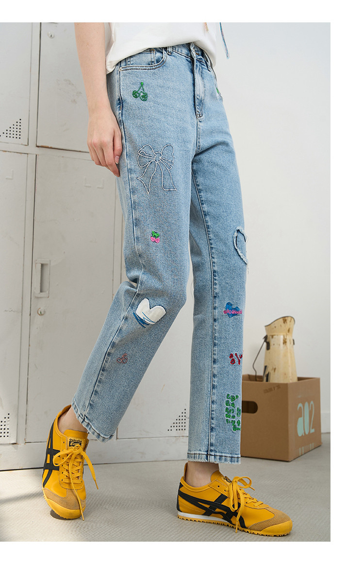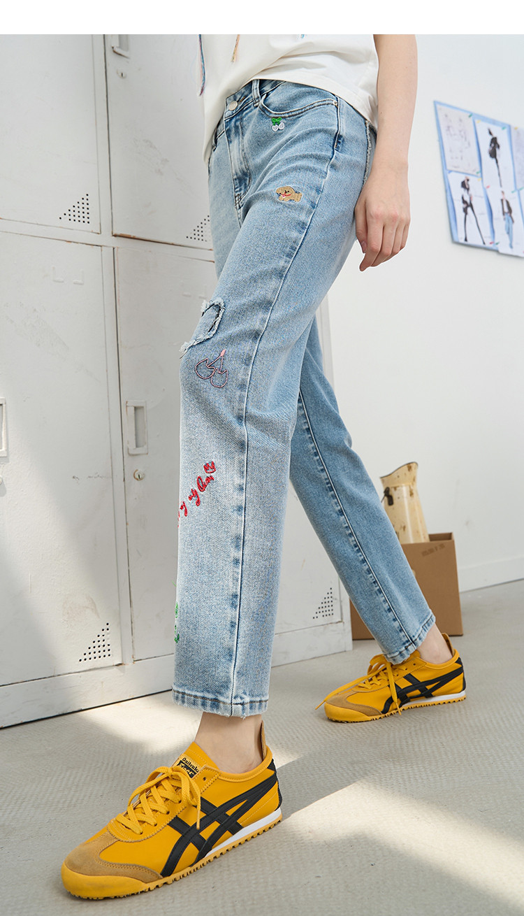 商品名称:刺绣设计感小众高腰小个子直筒裤2025夏季休闲百搭女式牛仔裤 975709