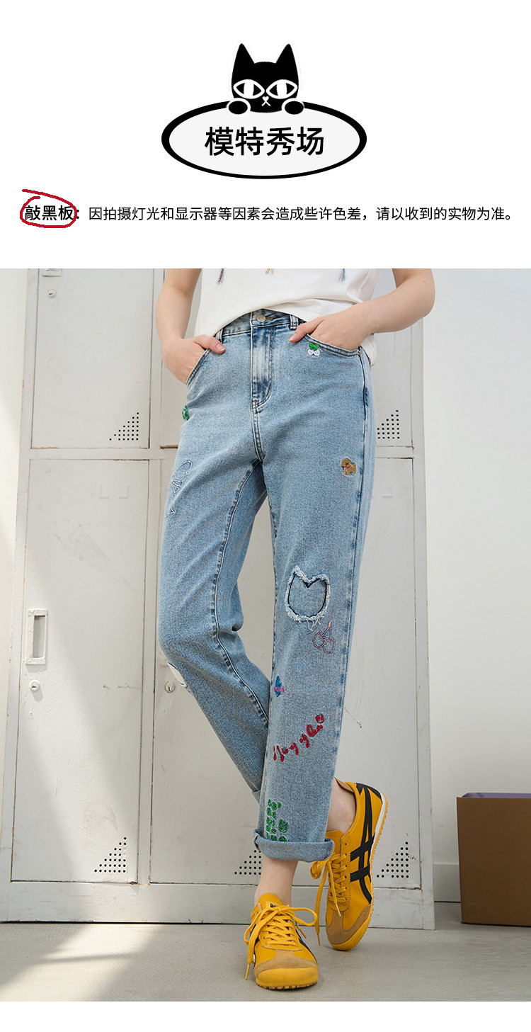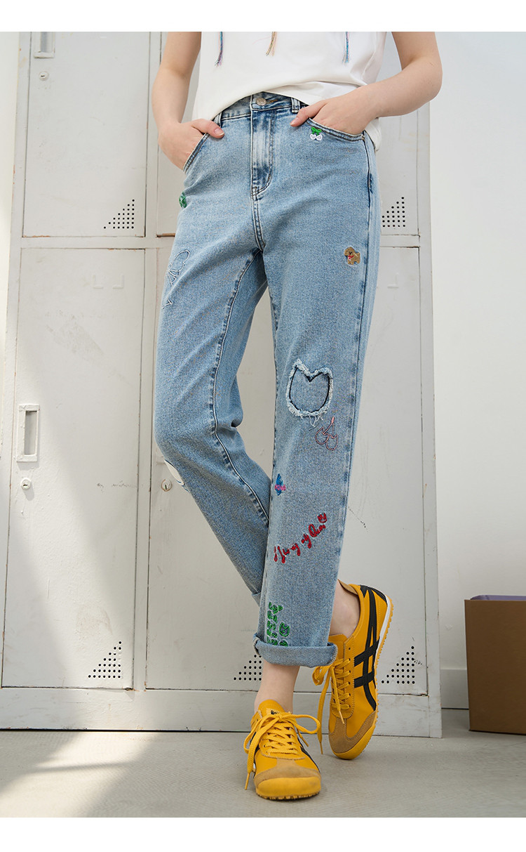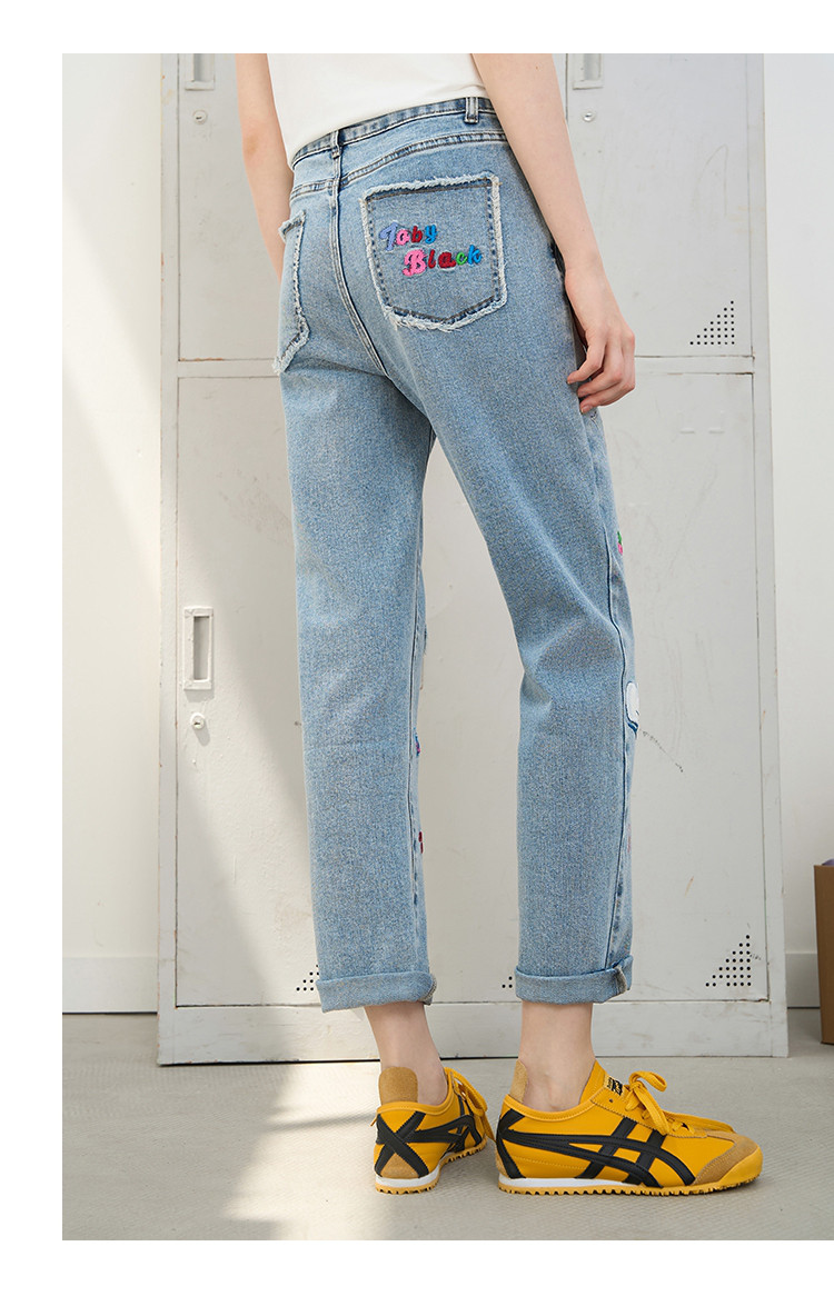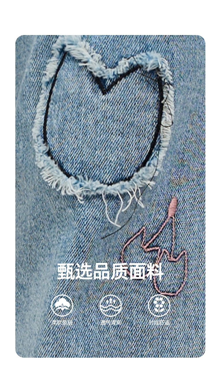 商品名称:刺绣设计感小众高腰小个子直筒裤2025夏季休闲百搭女式牛仔裤 975709