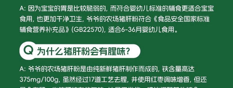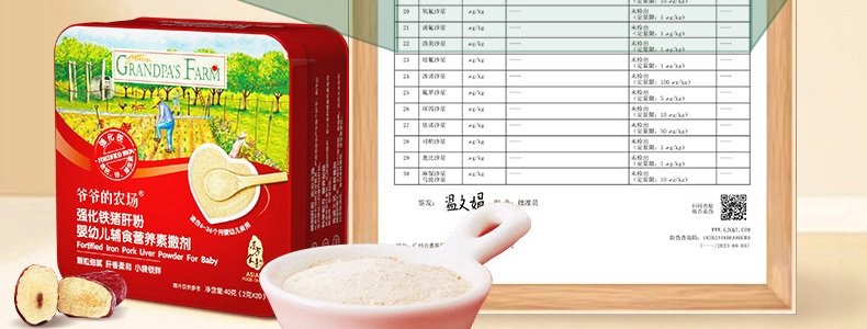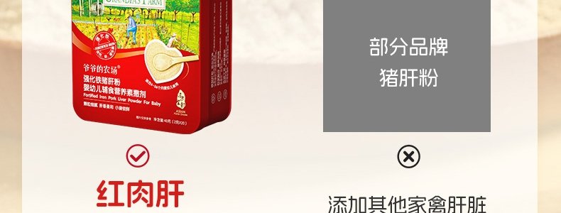 商品名称:爷爷的农场 强化铁猪肝粉婴幼儿辅食营养素撒剂 40g*2盒