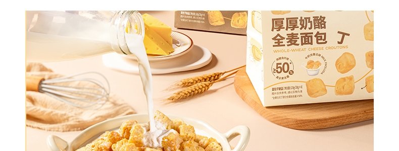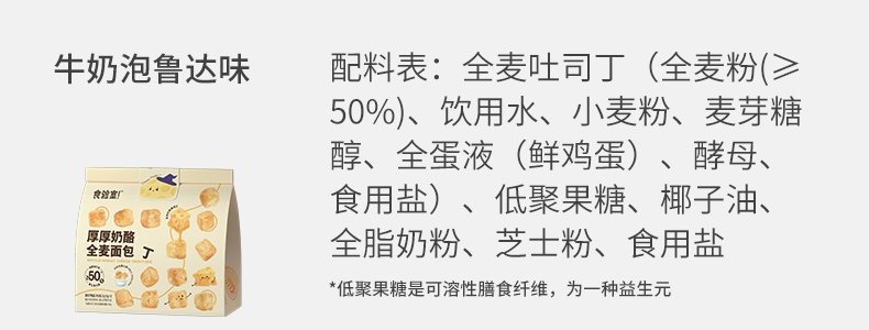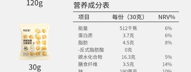 商品名称:食验室 厚厚奶酪全麦面包丁 牛奶泡鲁达味 30g*6包