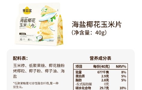 商品名称:食验室 厚厚奶酪玉米片 立袋装 海盐椰花 40g*4包