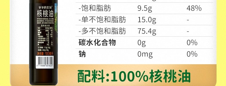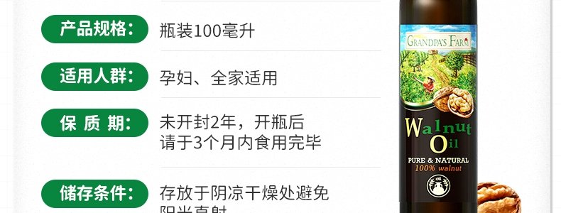 商品名称:法国 爷爷的农场(Grandpa's Farm)核桃油 100ml