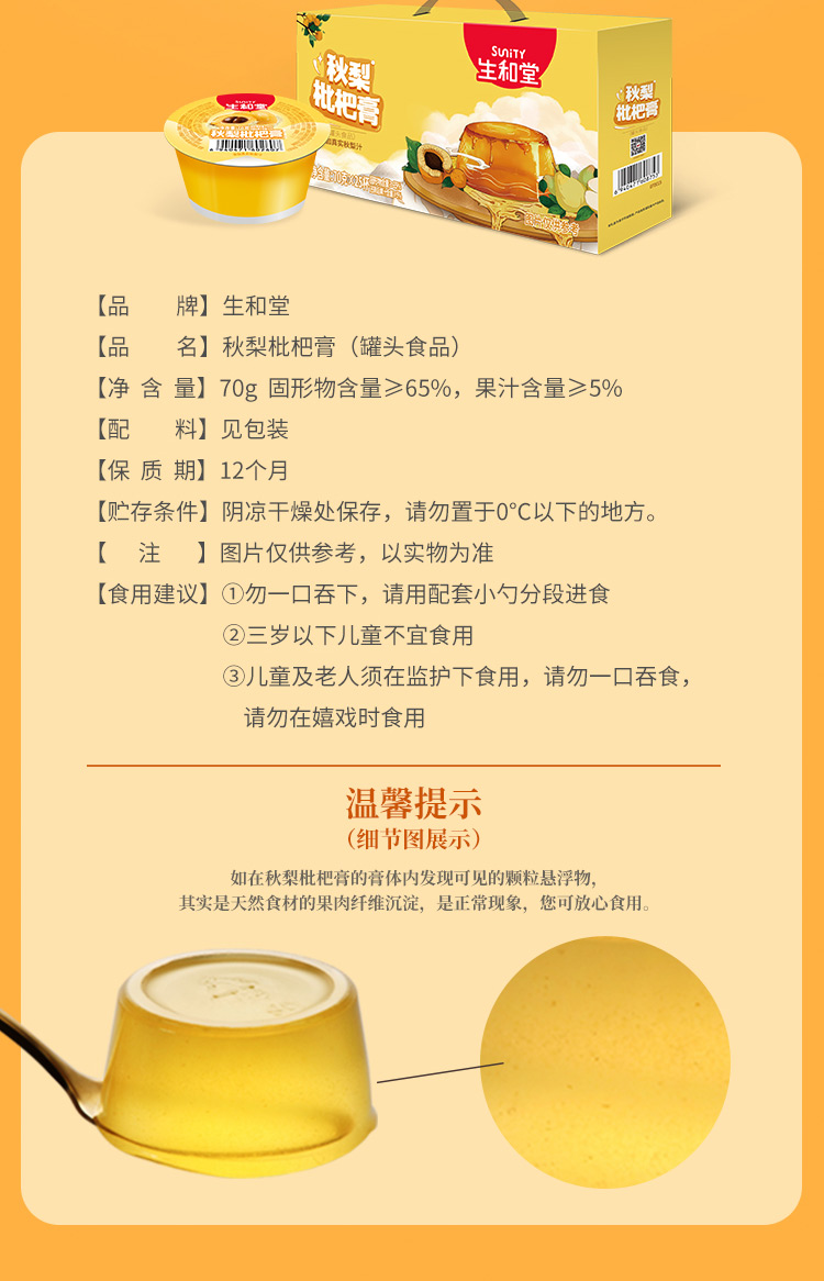 商品名称:生和堂秋梨枇杷膏礼盒70g*25杯