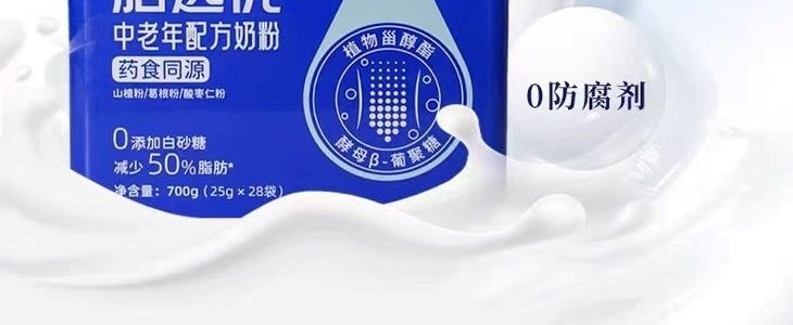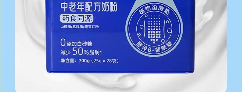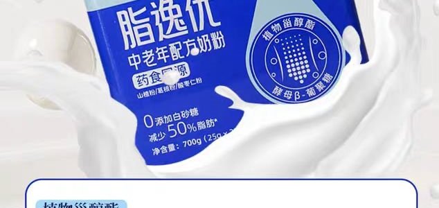 商品名称:完达山 脂逸优 中老年配方奶粉700g(25g*28袋)