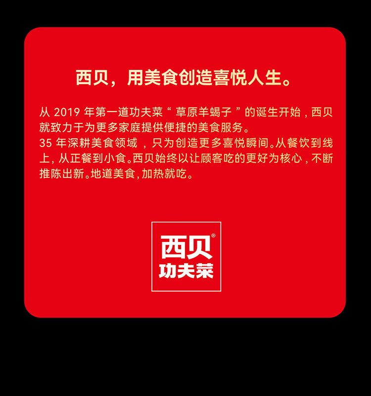 商品名称:【京东/顺丰配送】西贝功夫菜速冻食品组合2440g