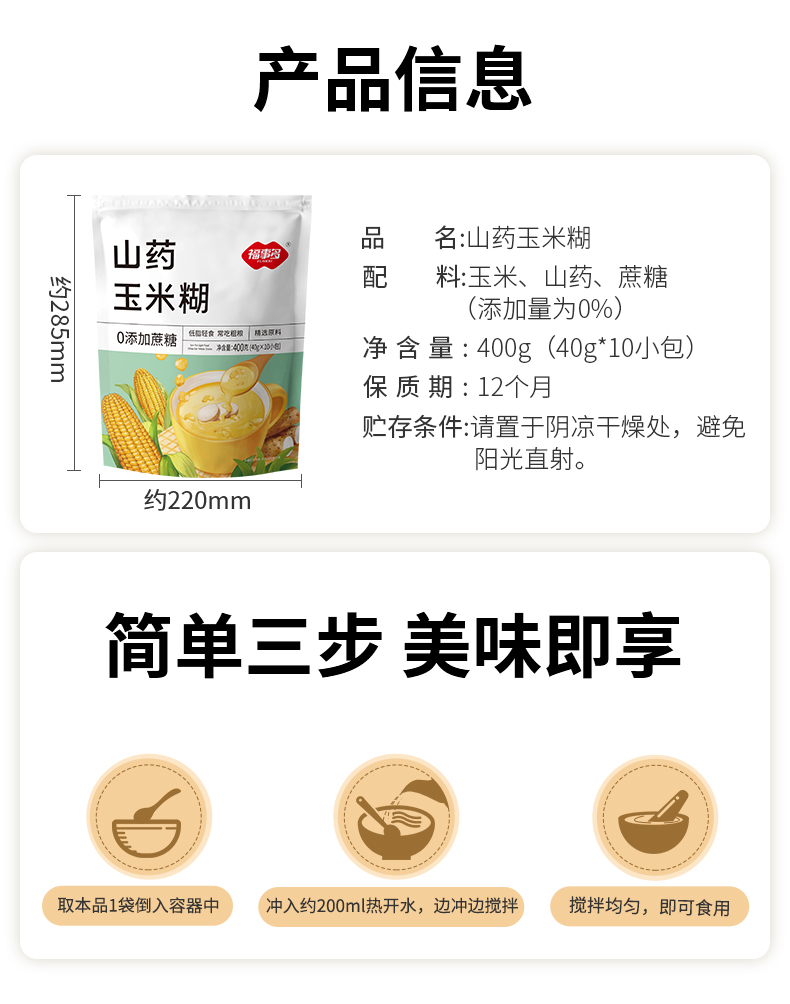 商品名称:福事多山药玉米糊400g*4袋