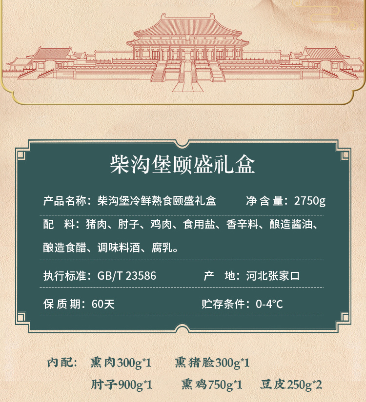 商品名称:【京东/顺丰配送】柴沟堡中华老字号冷鲜熟食颐盛礼盒2750g