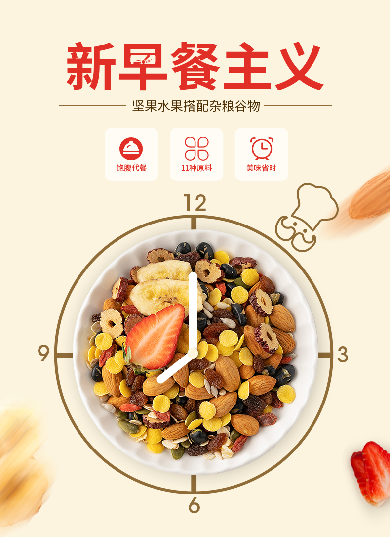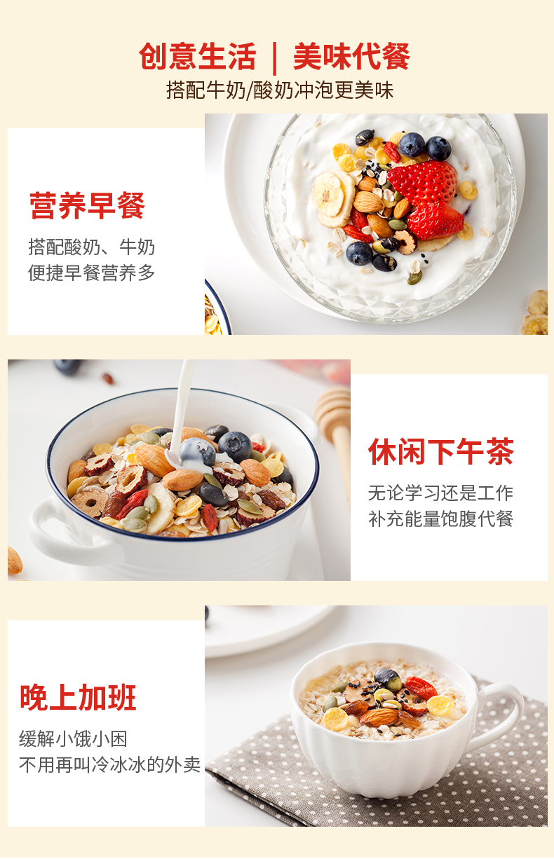 福事多杂粮谷物水果坚果麦片1000g*2桶