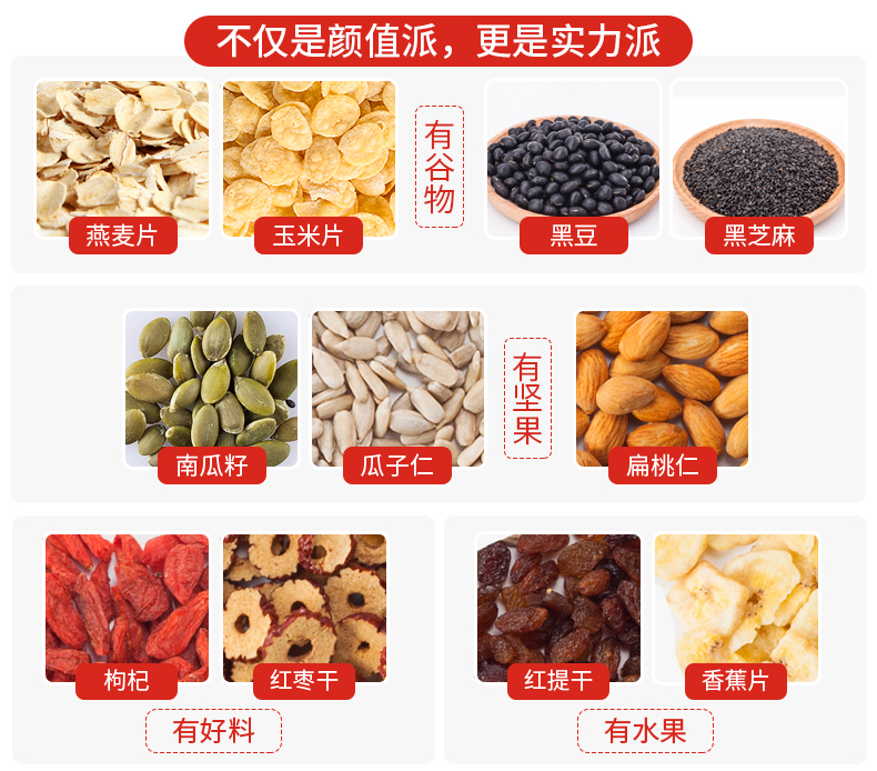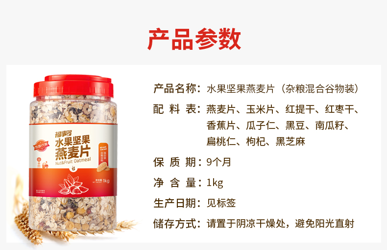 商品名称:福事多杂粮谷物水果坚果麦片1000g*2桶