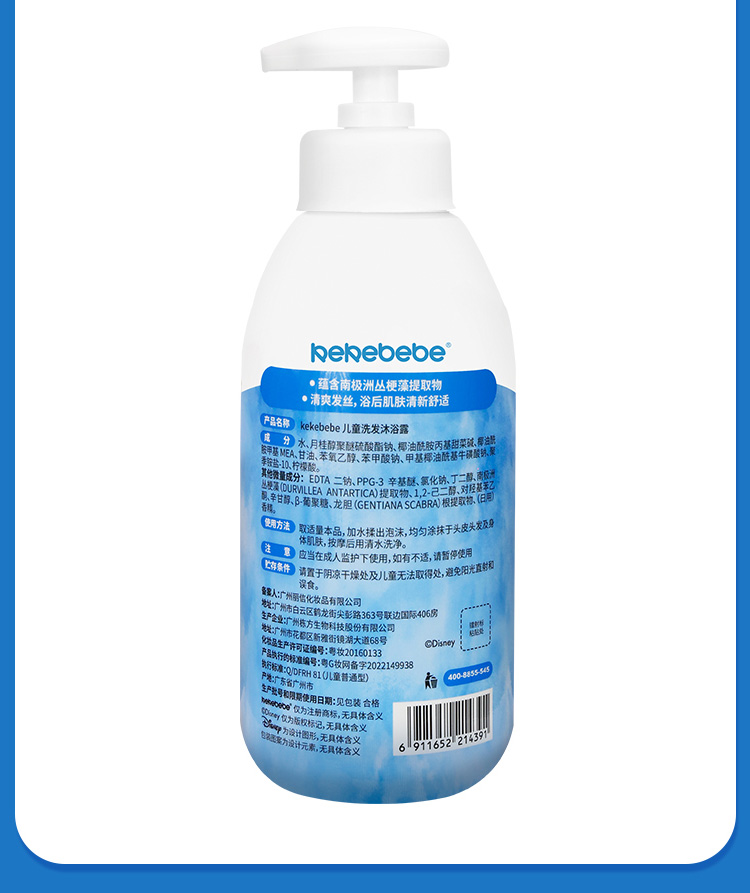 商品名称:kekebebe 迪士尼儿童洗发沐浴露-米奇500g