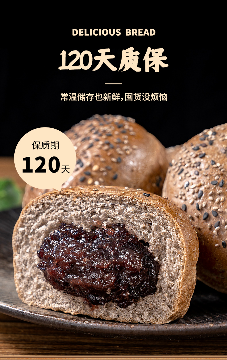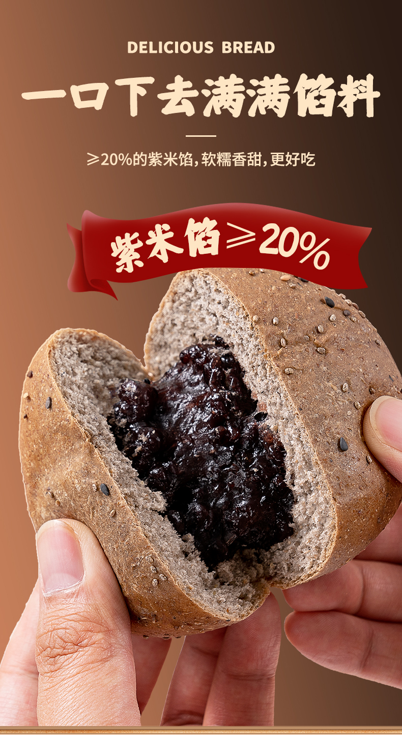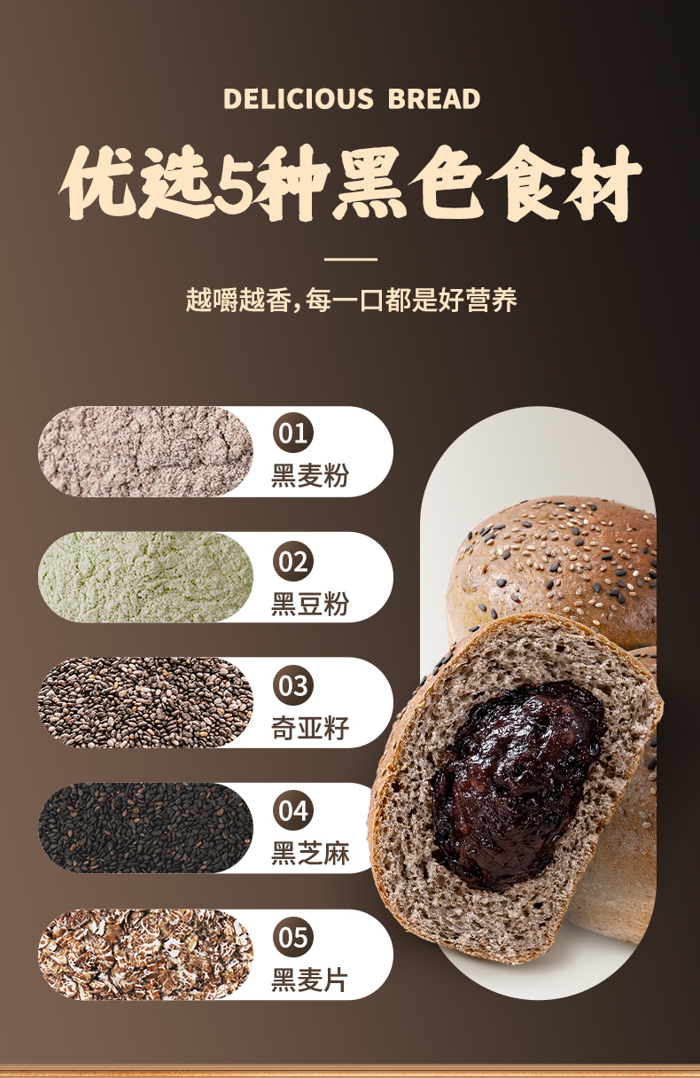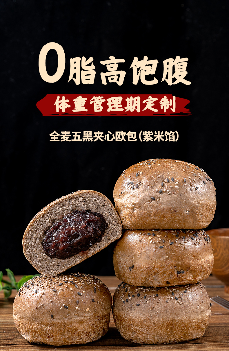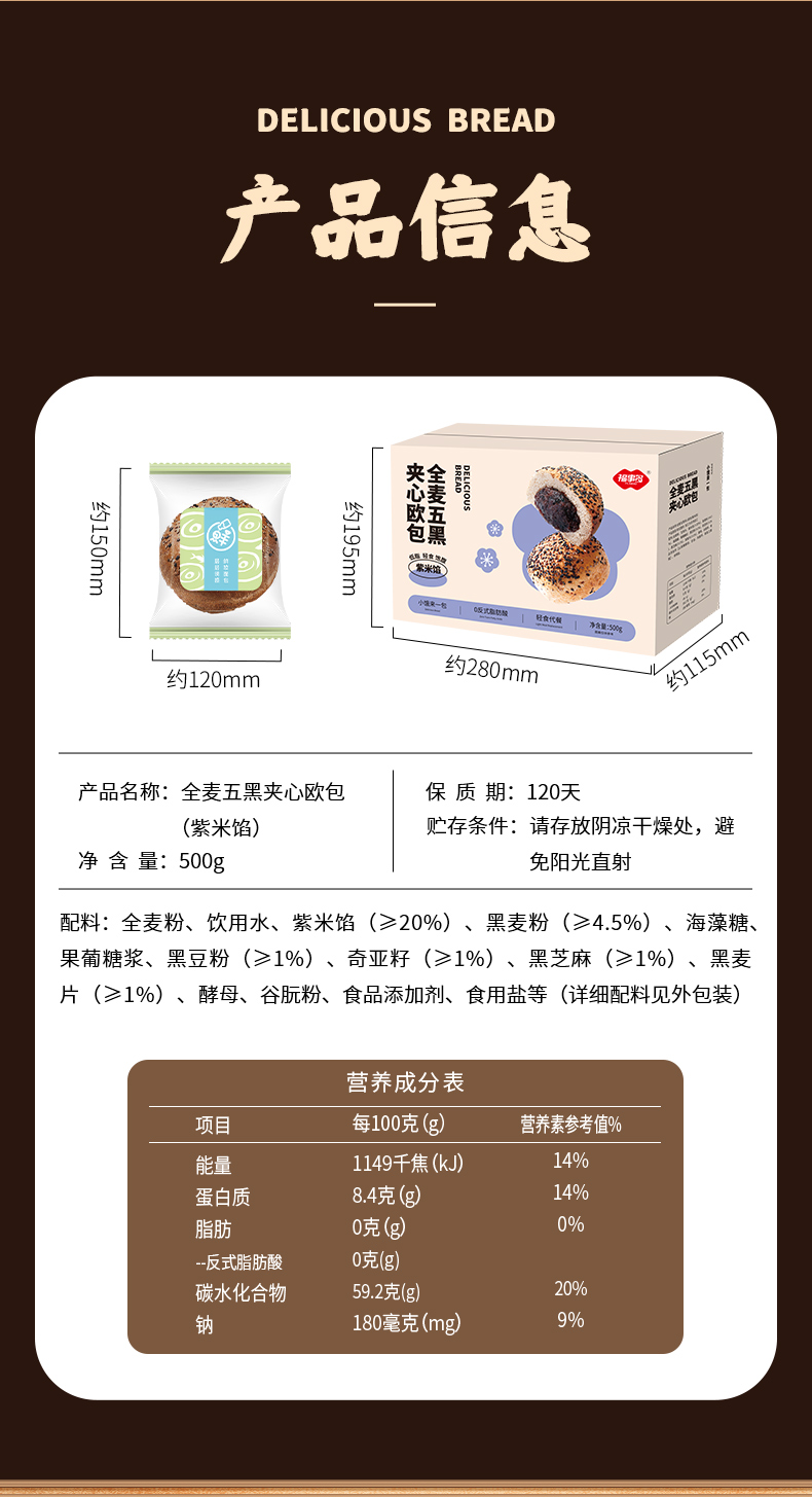 商品名称:福事多全麦五黑紫米夹心欧包500g*2箱