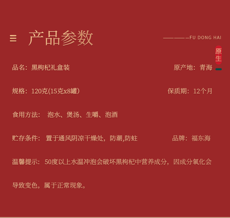 商品名称:福东海黑枸杞礼盒120g