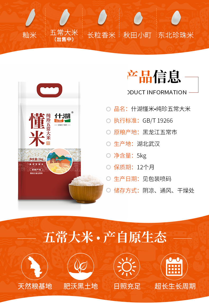 商品名称:什湖懂米纯珍五常大米5kg