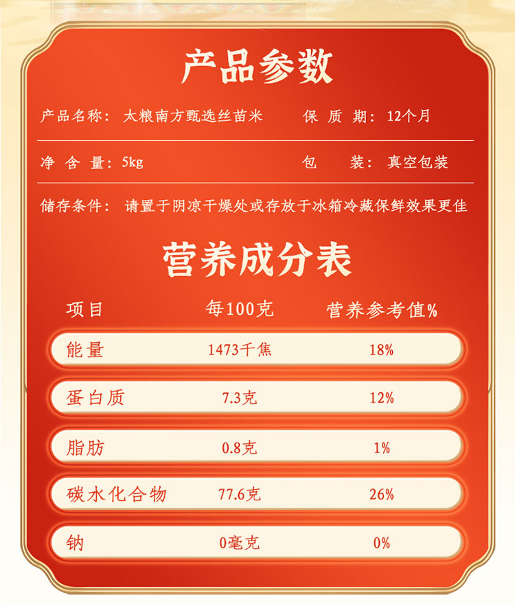 商品名称:太粮南方甄选丝苗米5kg