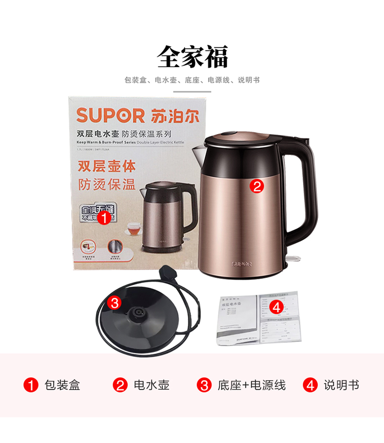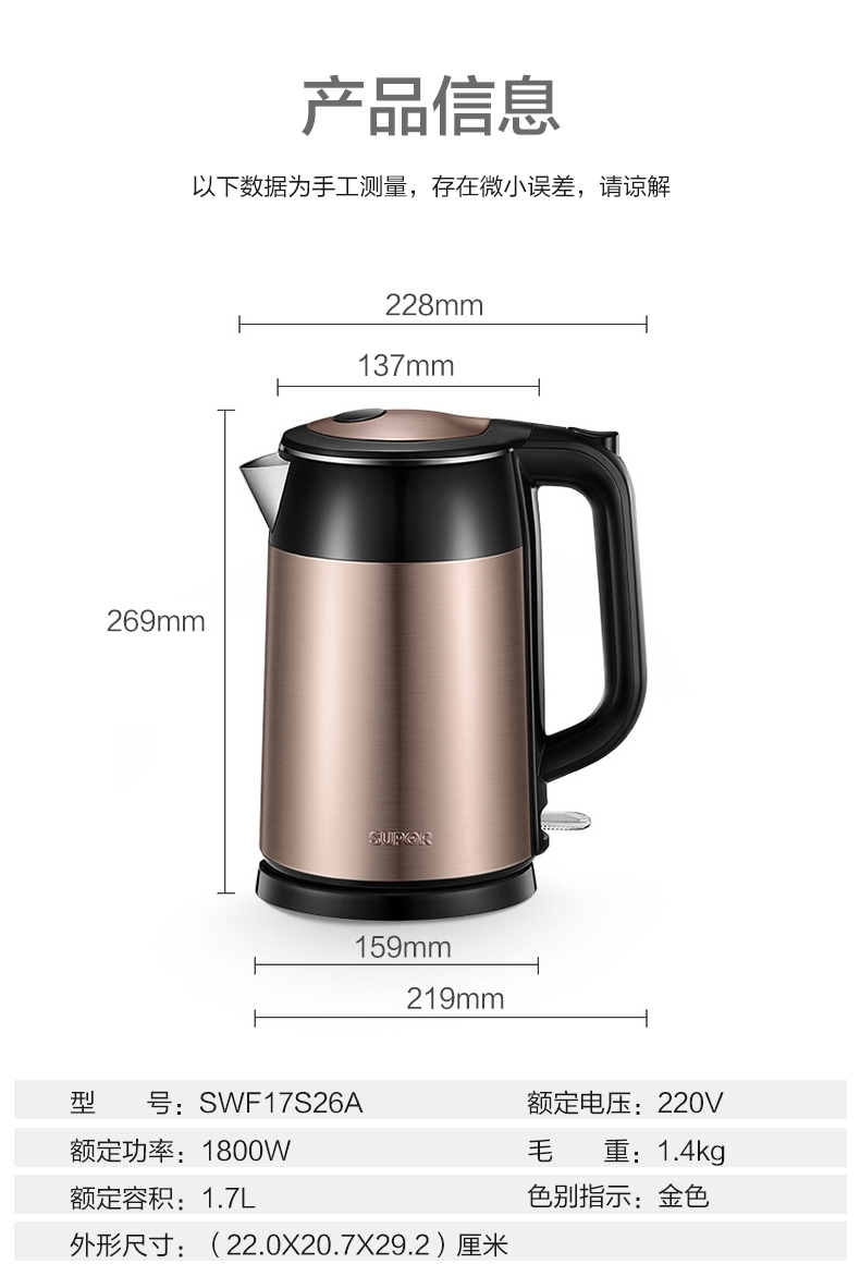 商品名称:SUPOR/苏泊尔1.7升电水壶-金色SWF17S26A