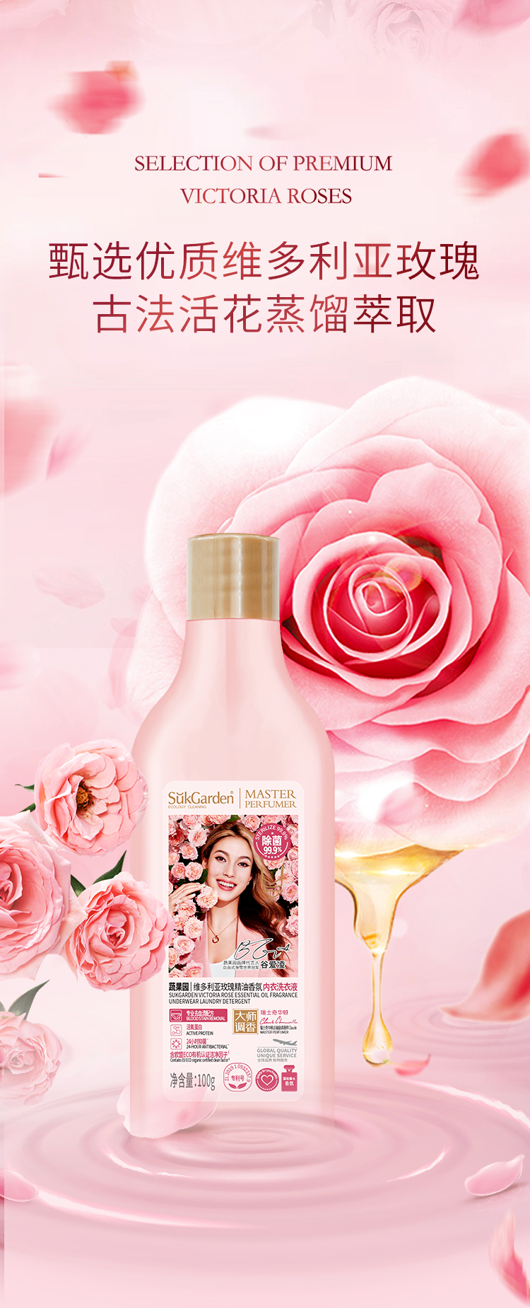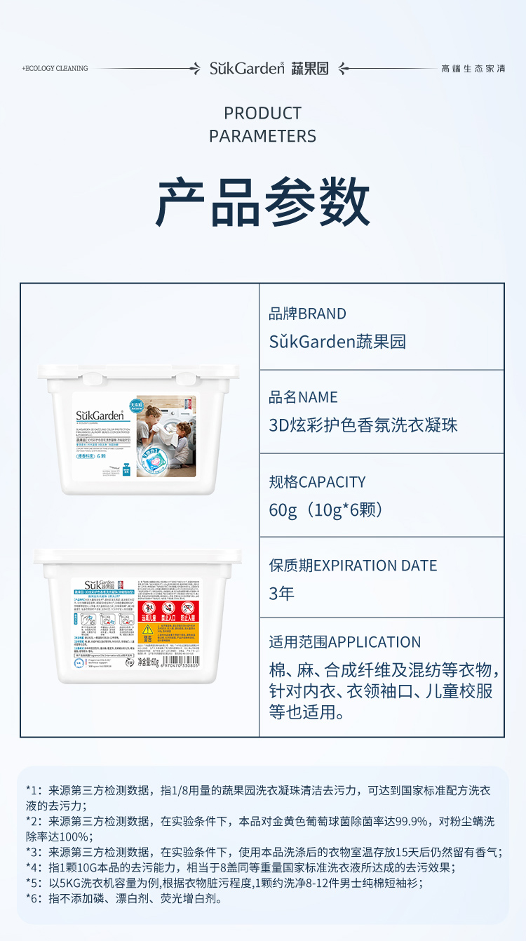商品名称:SukGarden/蔬果园3D炫彩护色香氛洗衣凝珠玫瑰精油香氛内衣洗衣液组合160g
