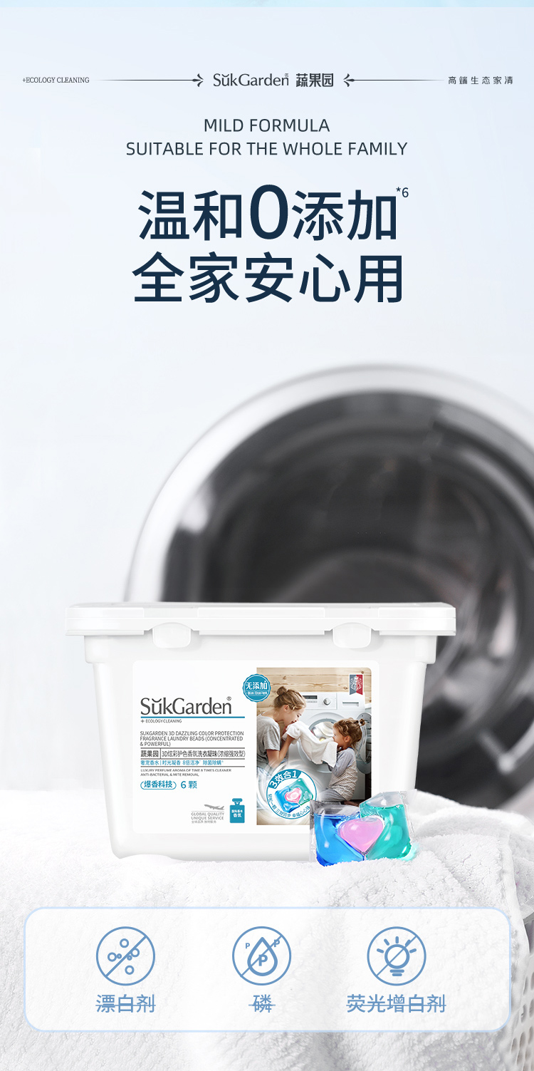SukGarden/蔬果园3D炫彩护色香氛洗衣凝珠玫瑰精油香氛内衣洗衣液组合160g