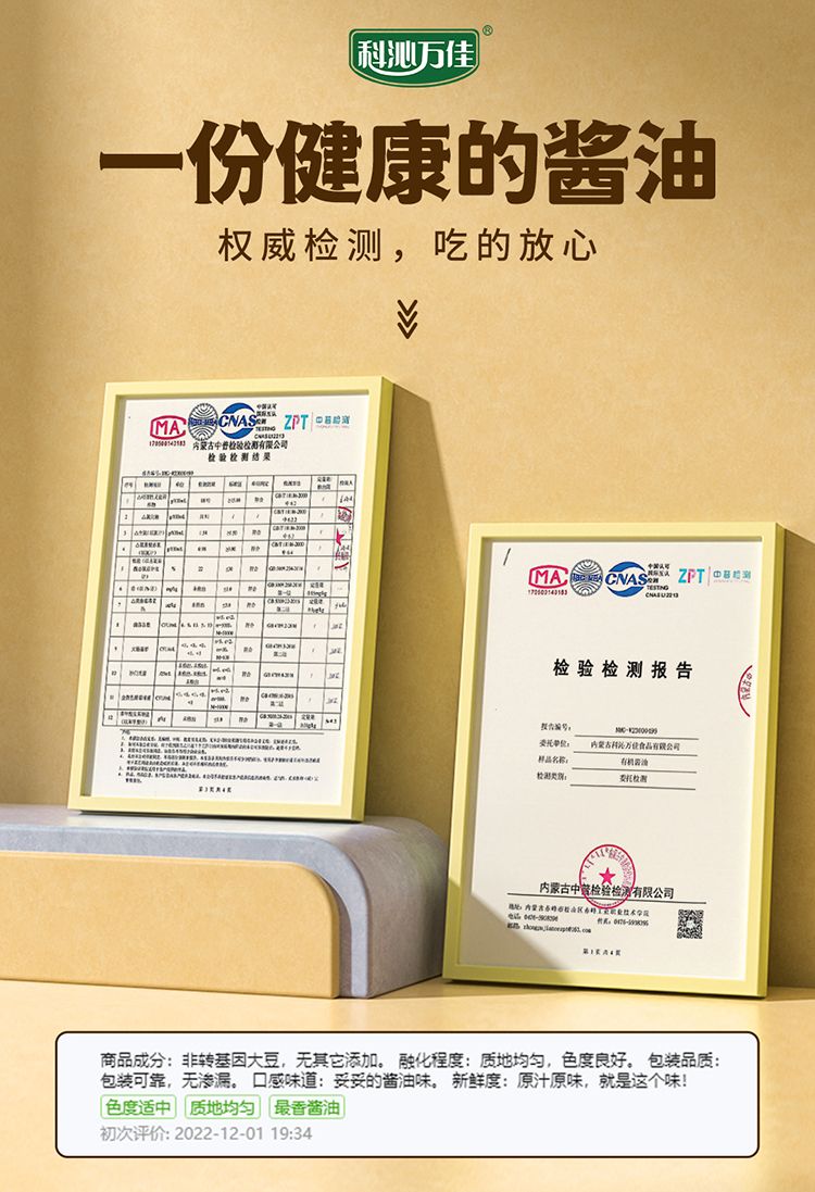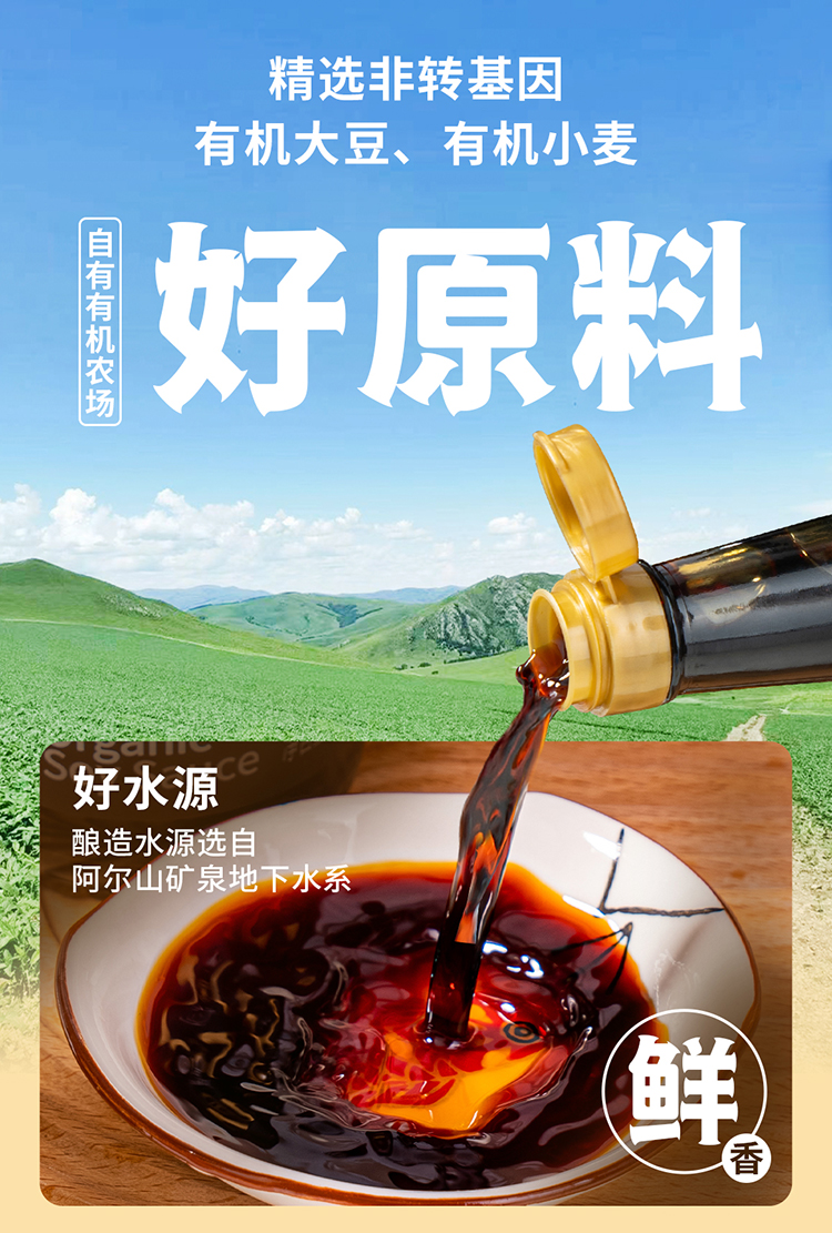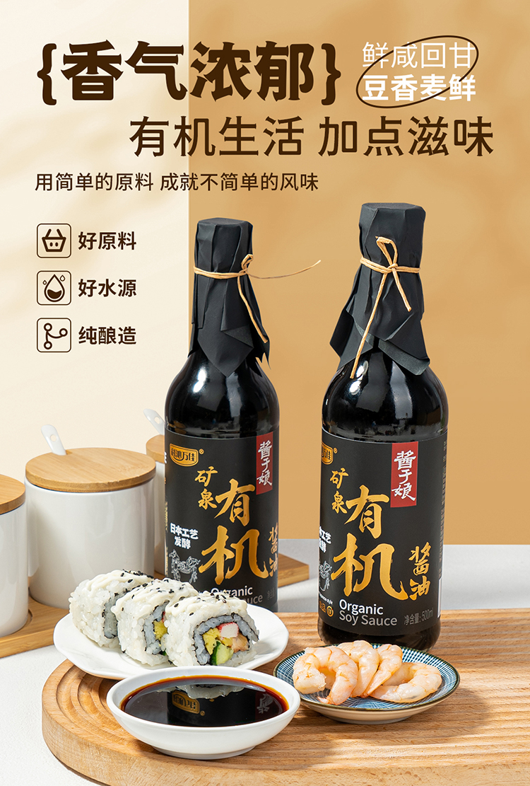 科沁万佳矿泉有机酱油500ml*2瓶