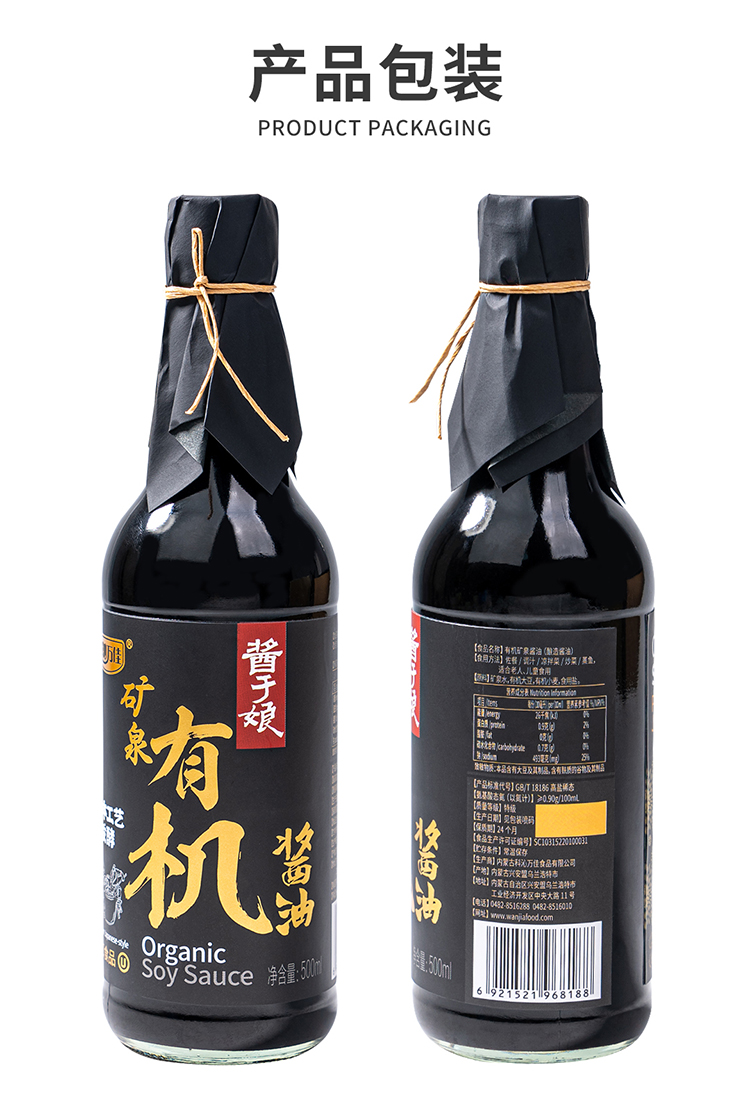 商品名称:科沁万佳矿泉有机酱油500ml*2瓶