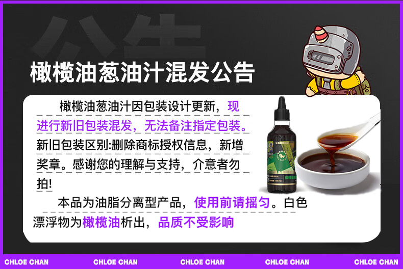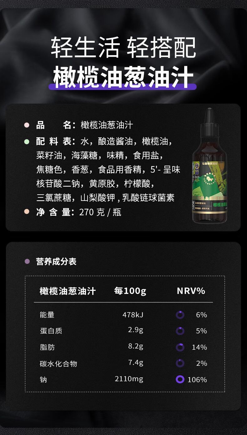 商品名称:暴肌独角兽橄榄油葱油汁270g*3瓶