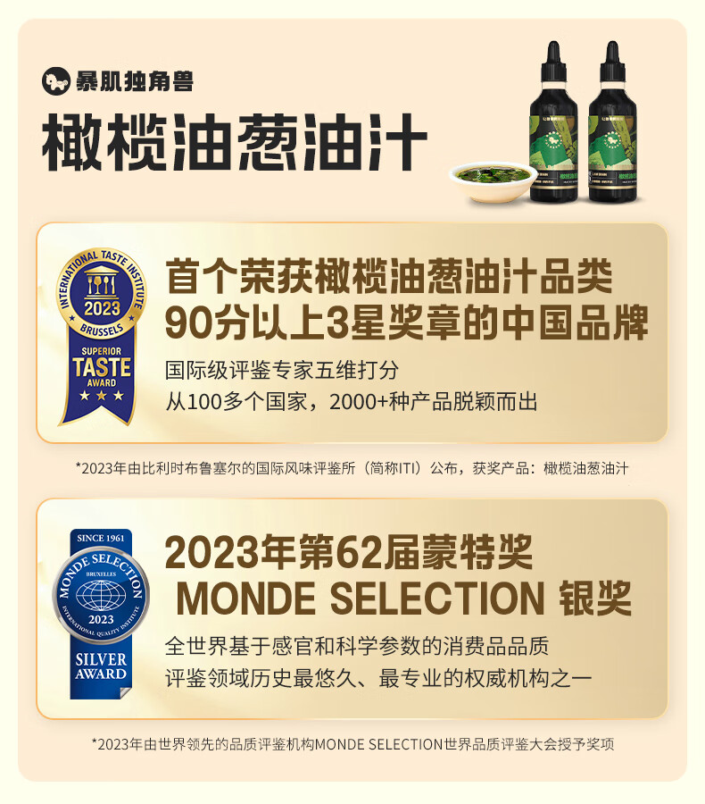 暴肌独角兽橄榄油葱油汁270g*3瓶