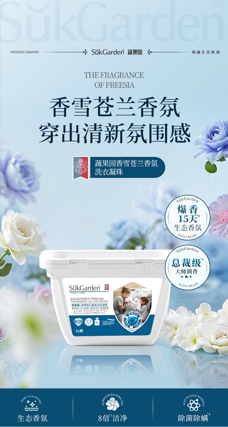 SukGarden/蔬果园香雪苍兰香氛洗衣凝珠维多利亚玫瑰与染井吉野樱花长效留香珠644g